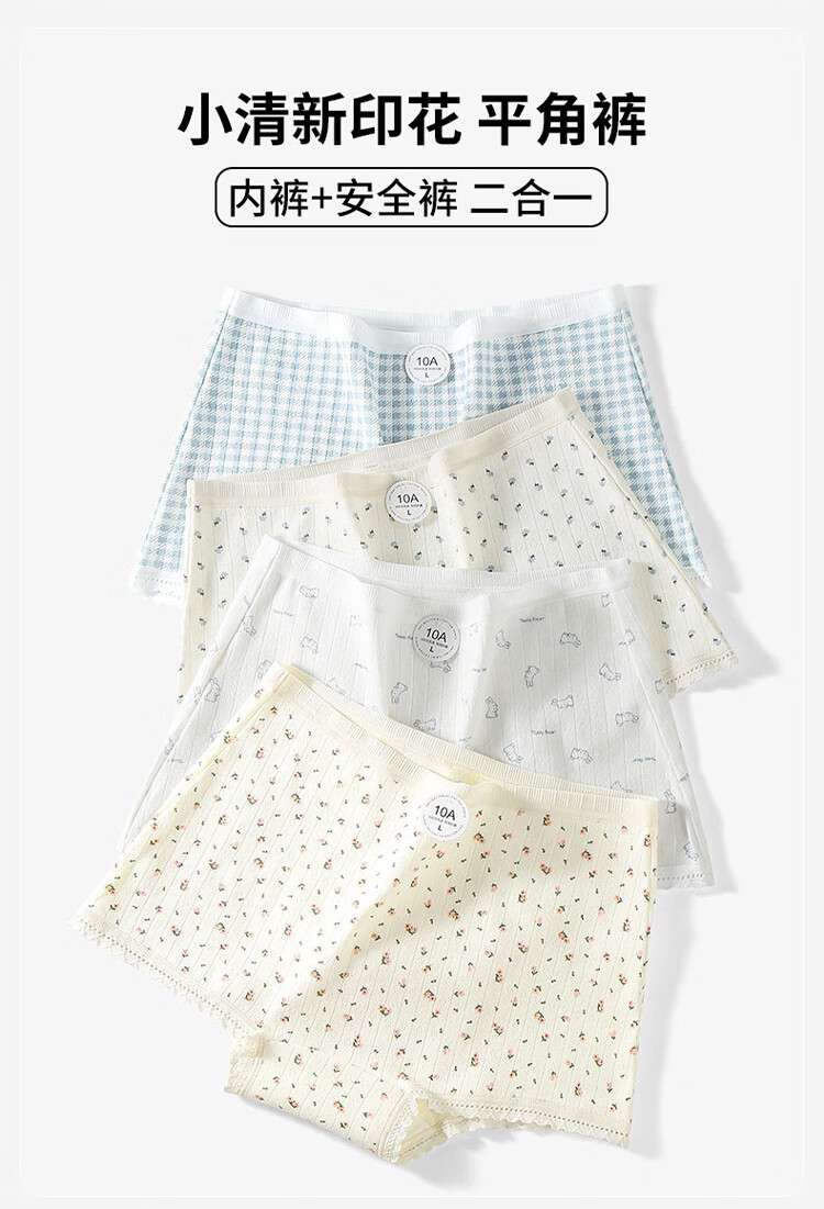 FitonTon平角内裤女纯棉抑菌裆安全裤二合一防走光透气四角短裤4条装