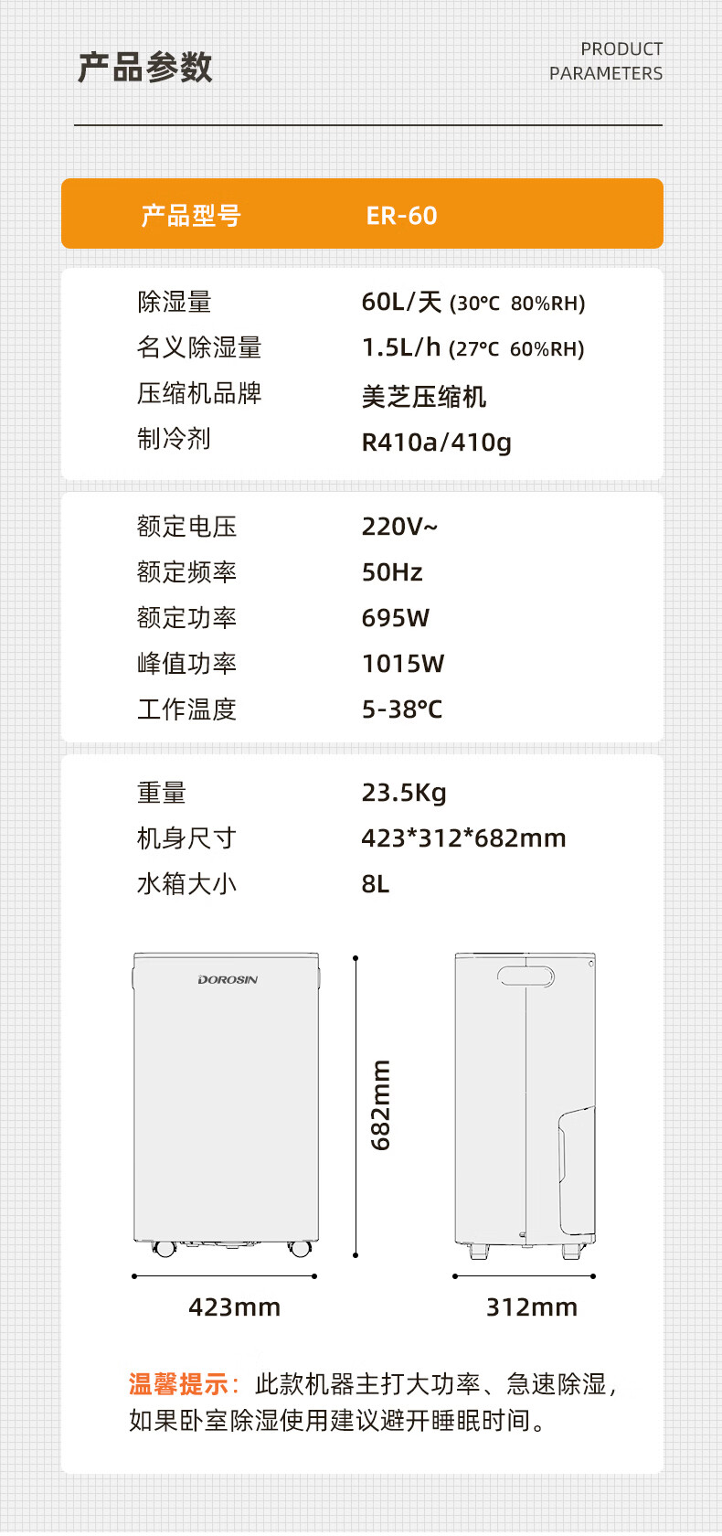 多乐信(DOROSIN)除湿机/抽湿机 除湿量60升/天 120㎡家