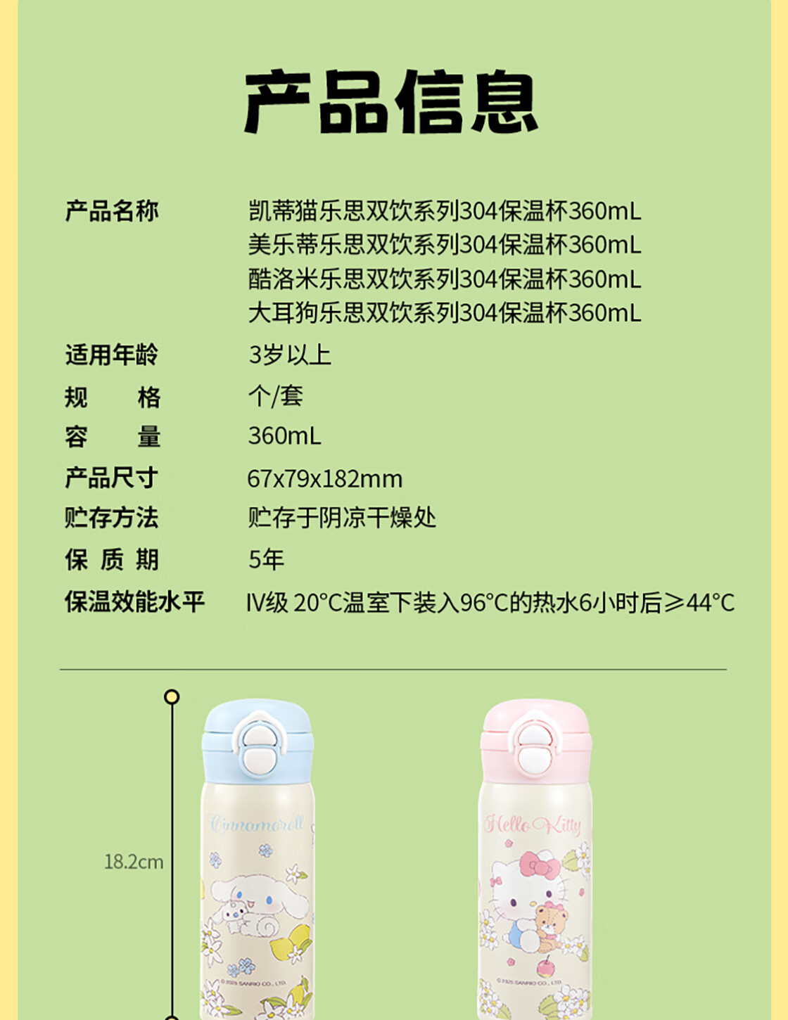 名创优品(MINISO)酷洛米乐思双饮系列304保温杯360mL