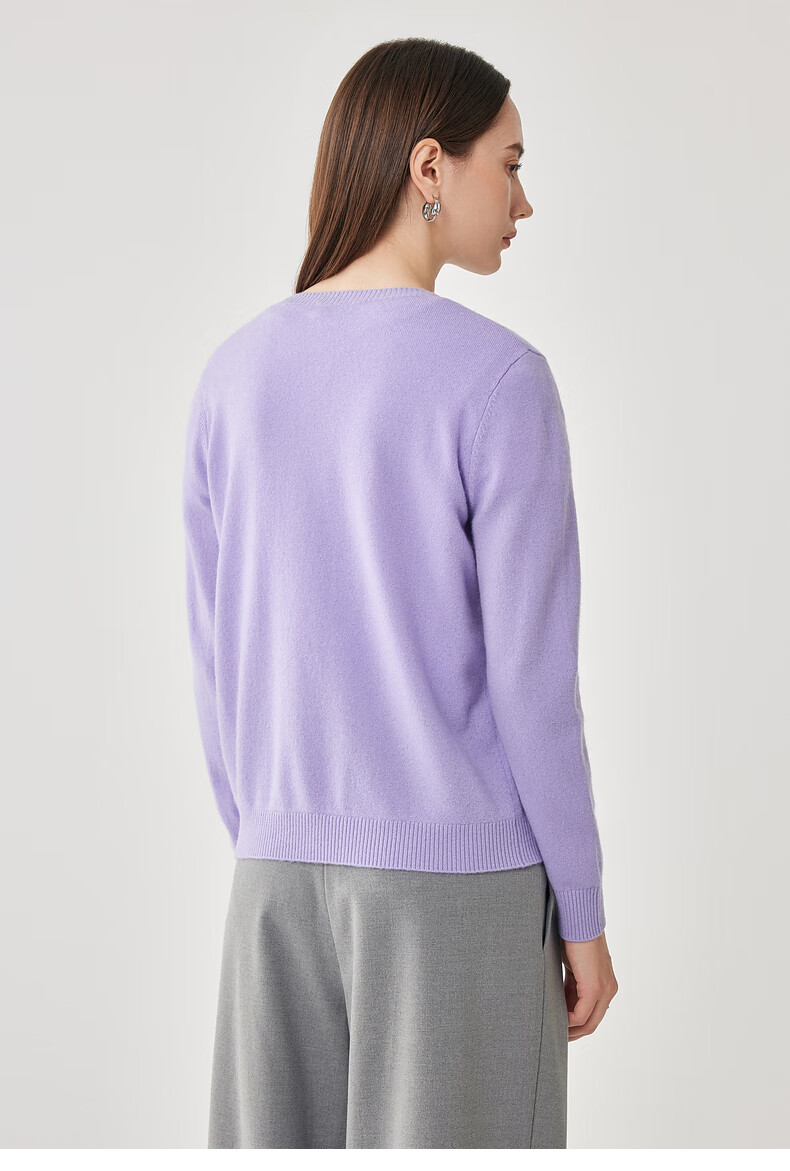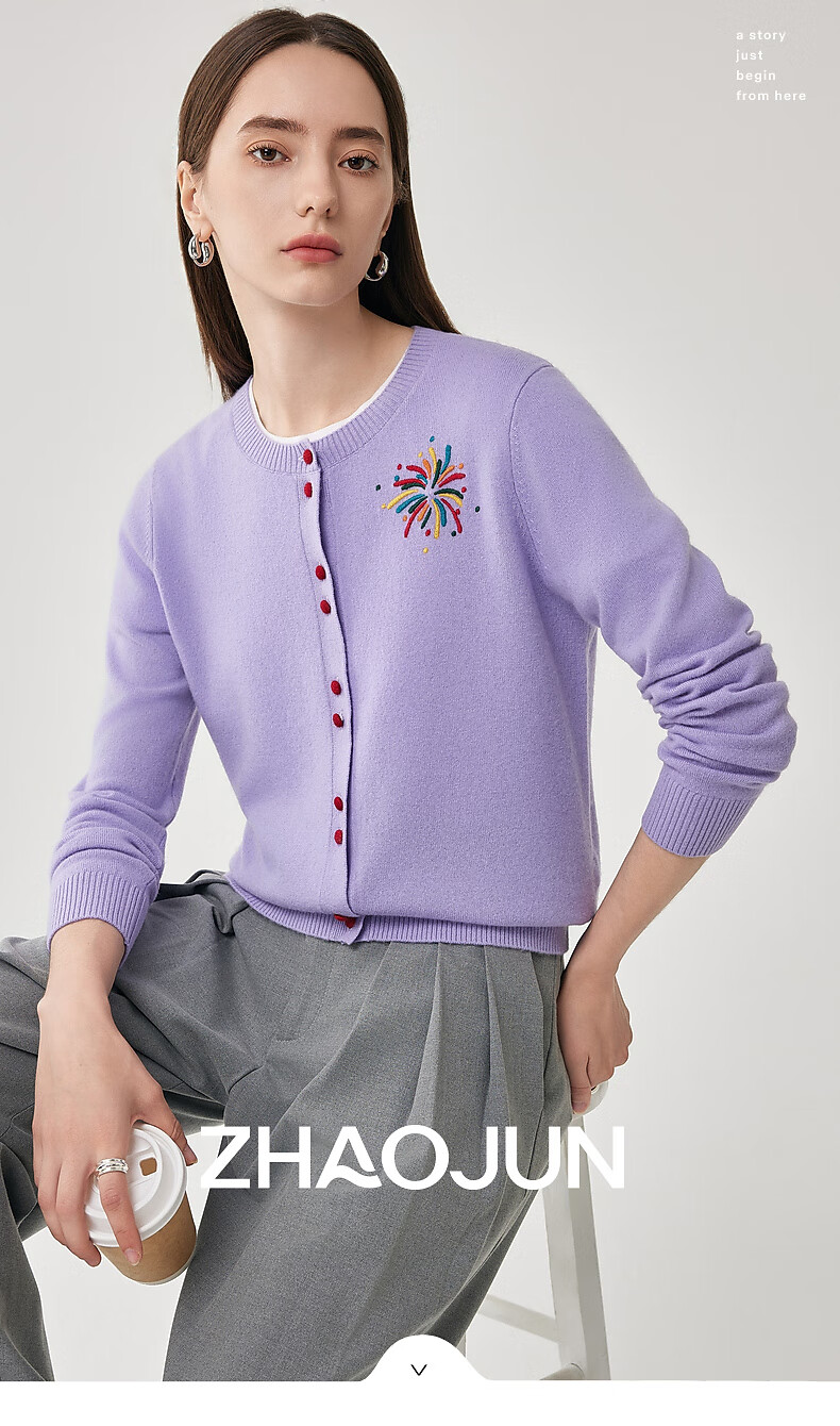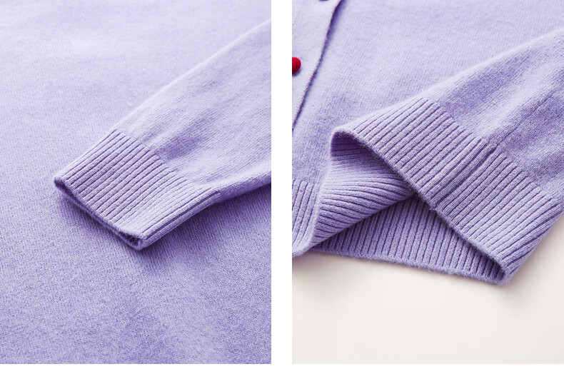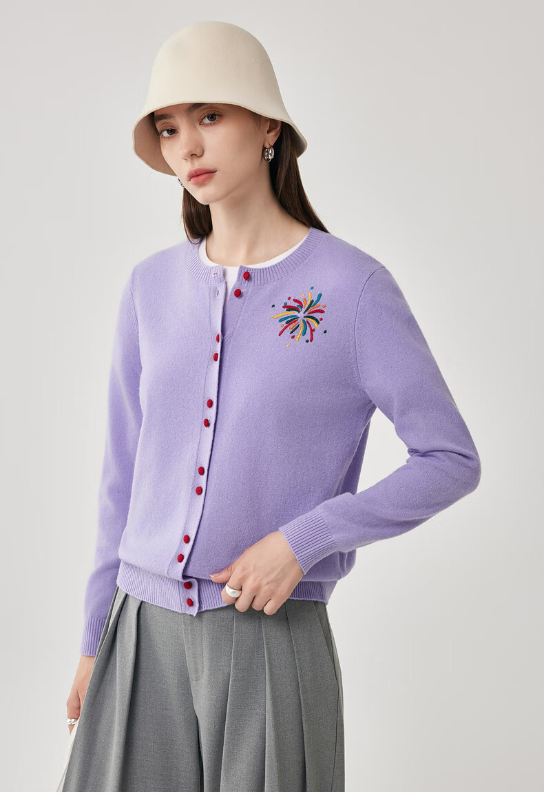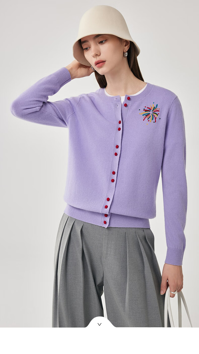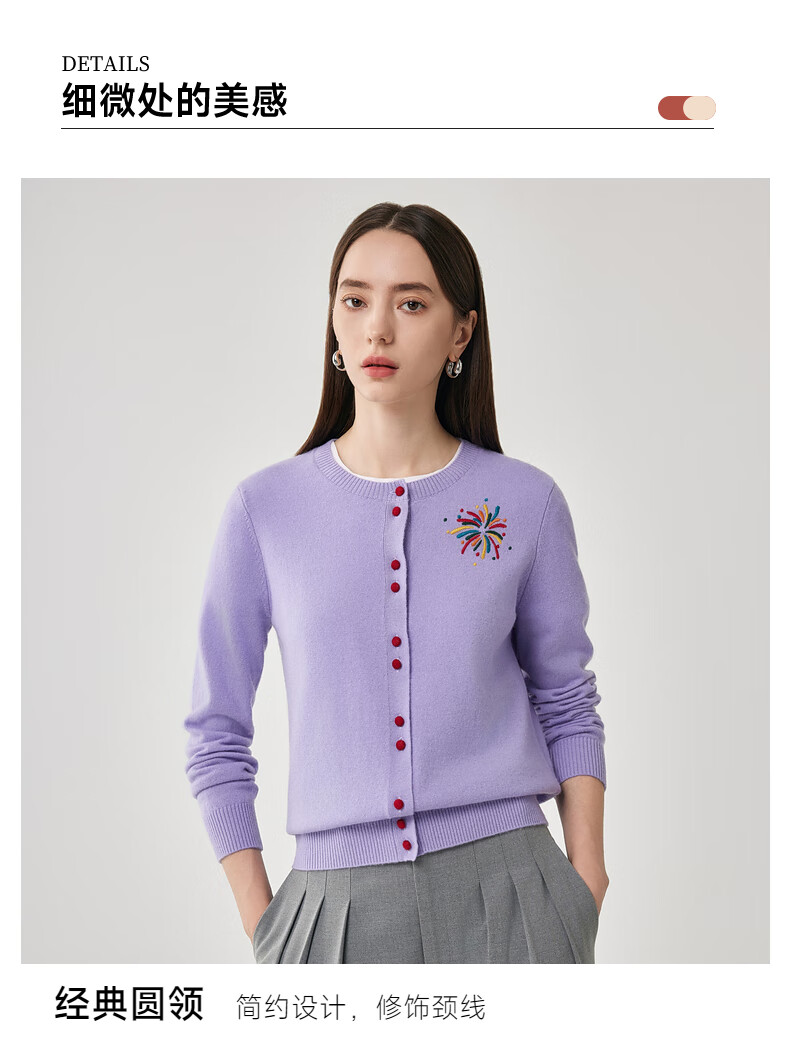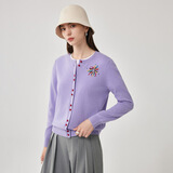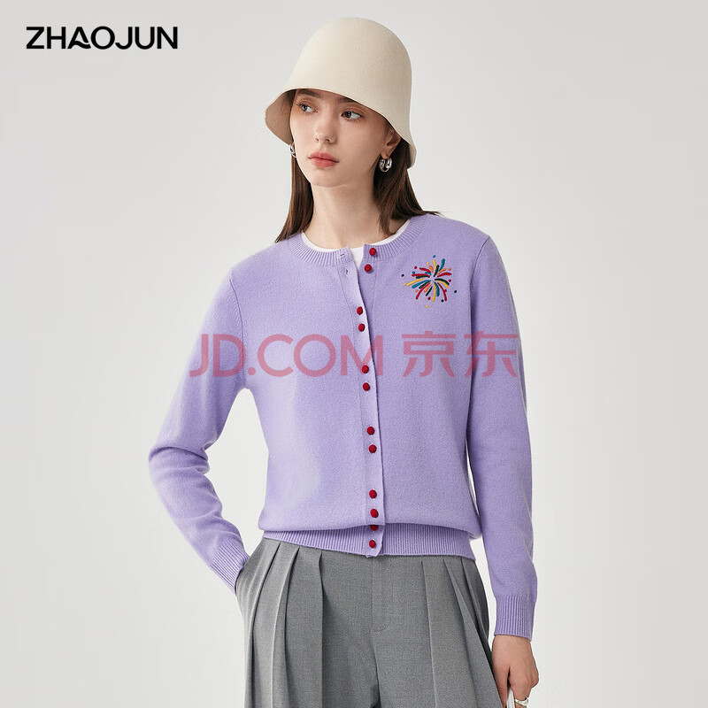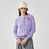兆君2025秋冬圆领100%羊毛衫女开衫外套撞色针织上衣 石楠花紫 2XL