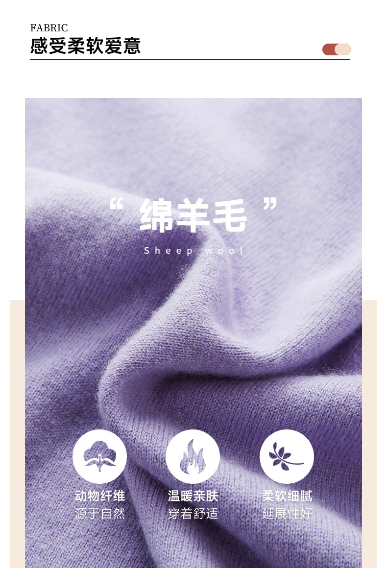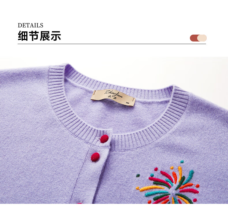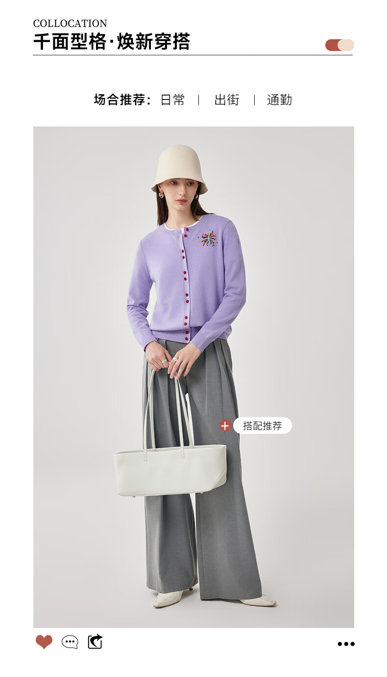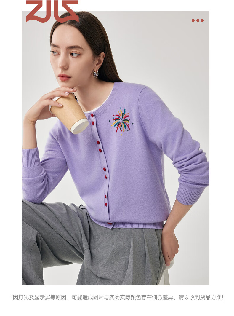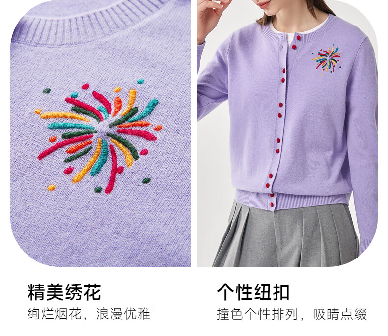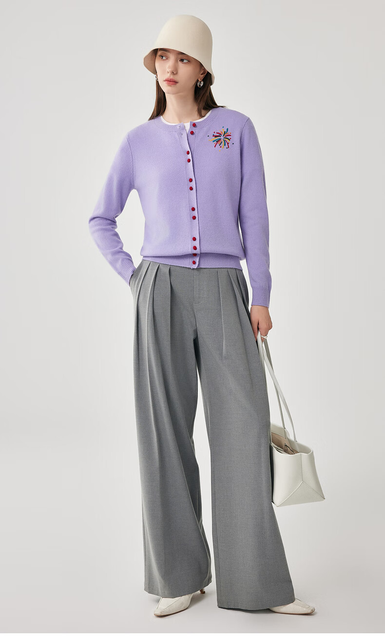 兆君2025秋冬圆领100%羊毛衫女开衫外套撞色针织上衣 石楠花紫 2XL