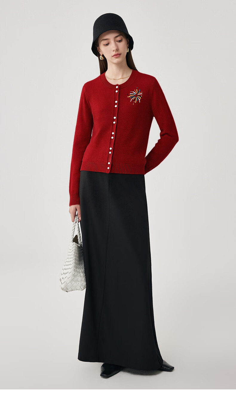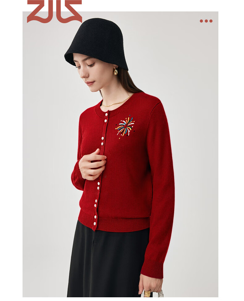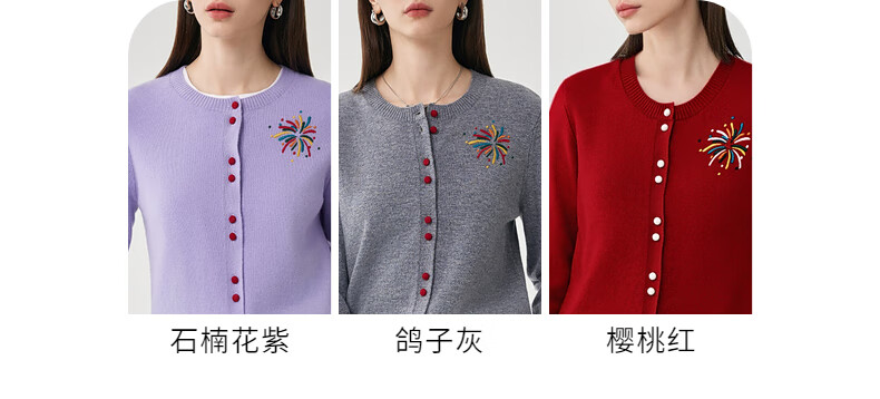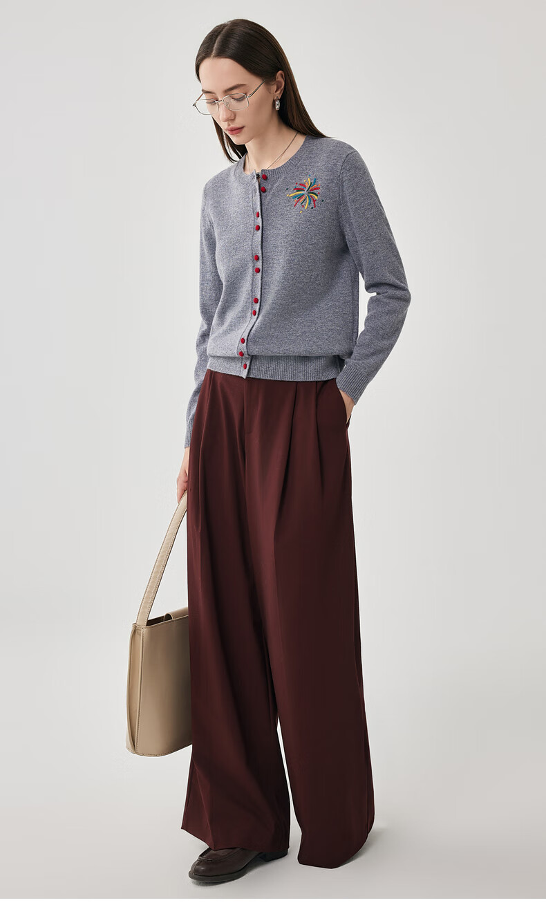 兆君2025秋冬圆领100%羊毛衫女开衫外套撞色针织上衣 石