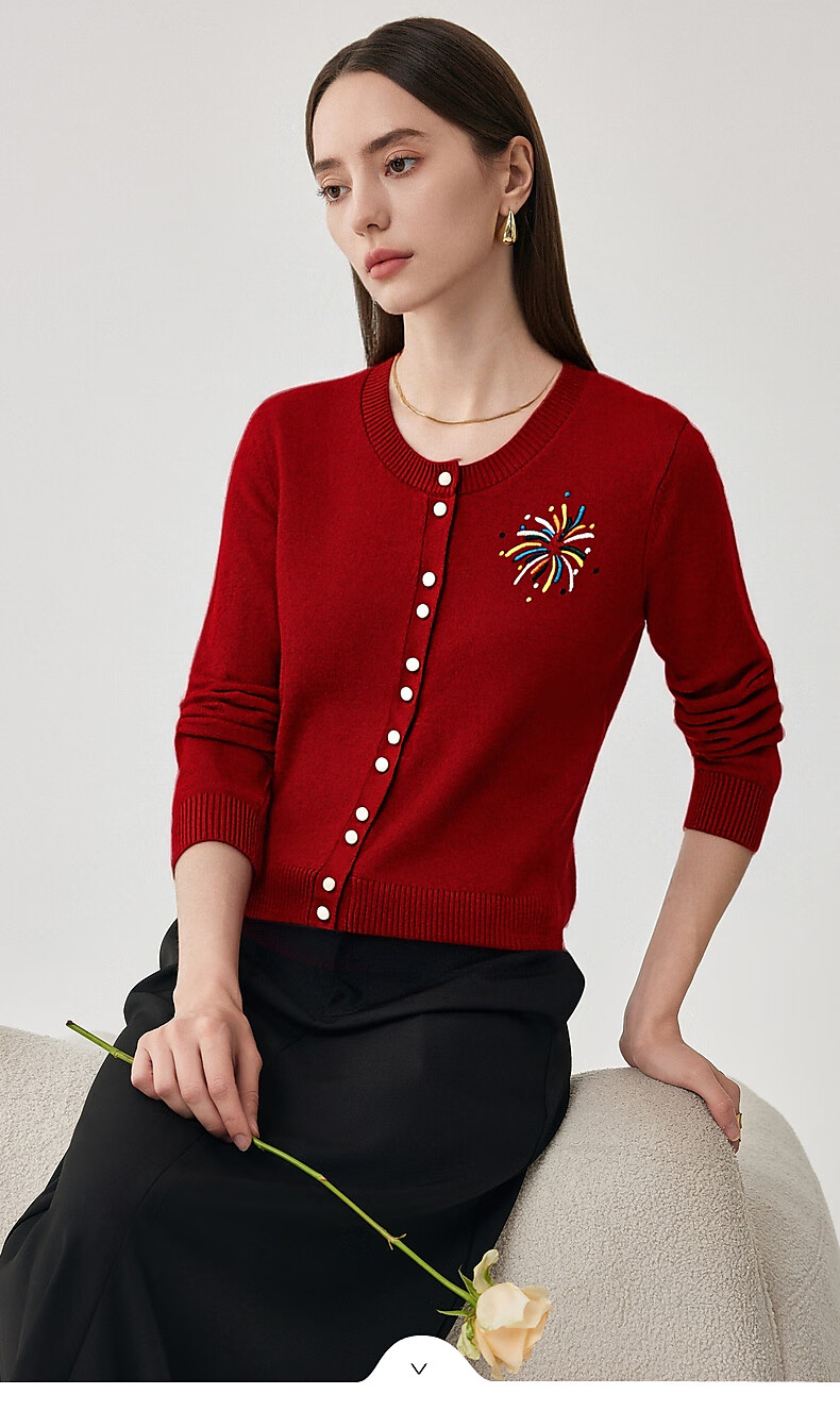 科蒙博卡2025秋冬羊毛衫女圆领开衫外套长袖针织上衣 杏