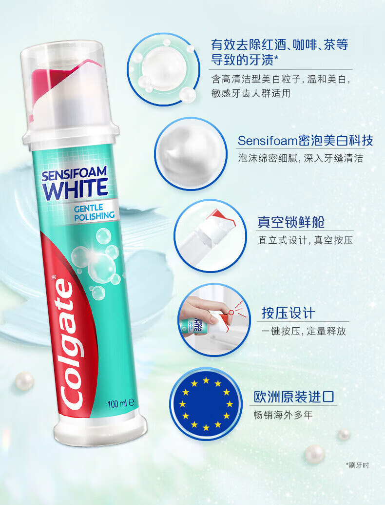 高露洁(Colgate)欧洲进口耀白去渍+密泡美白+防蛀直立按压泵式牙膏330ml去黄美白