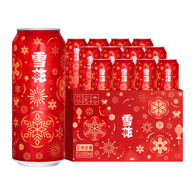 雪花啤酒(Snowbeer)节庆红罐8度500ml*12听 礼盒 新年送礼