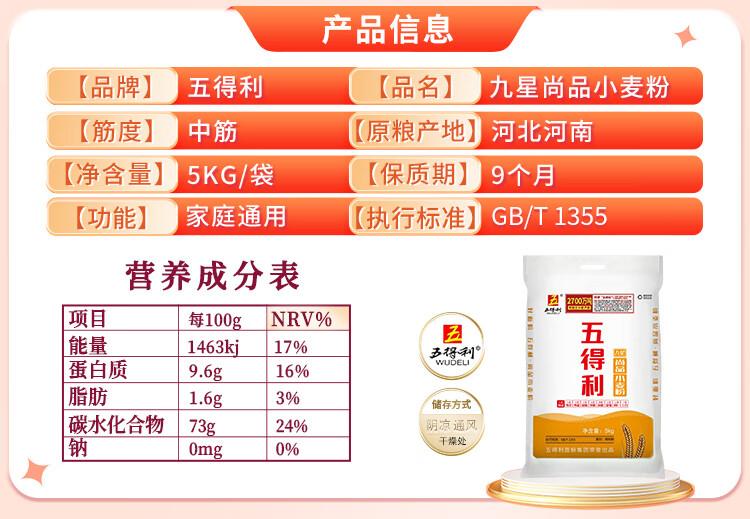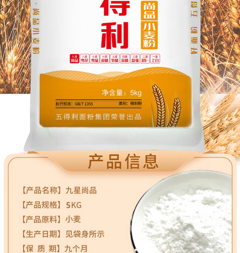 五得利九星尚品小麦粉10斤 高端通用白面馒头包子面条筋道