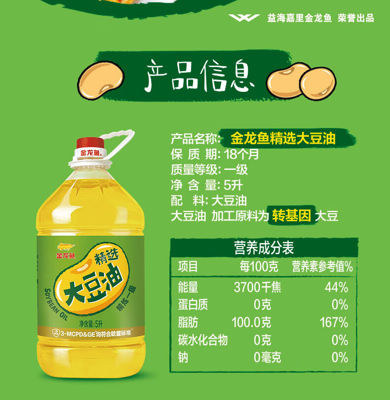 金龙鱼 食用油 精选大豆油5L(新老包装随机发货)
