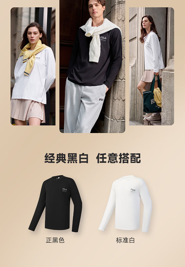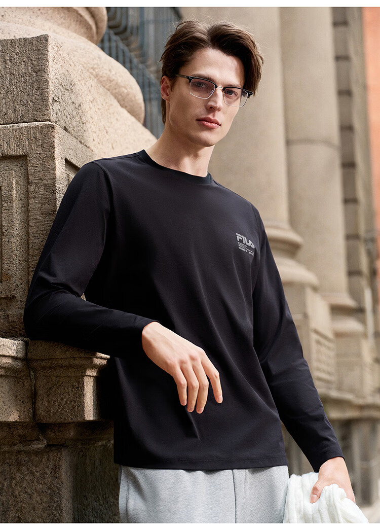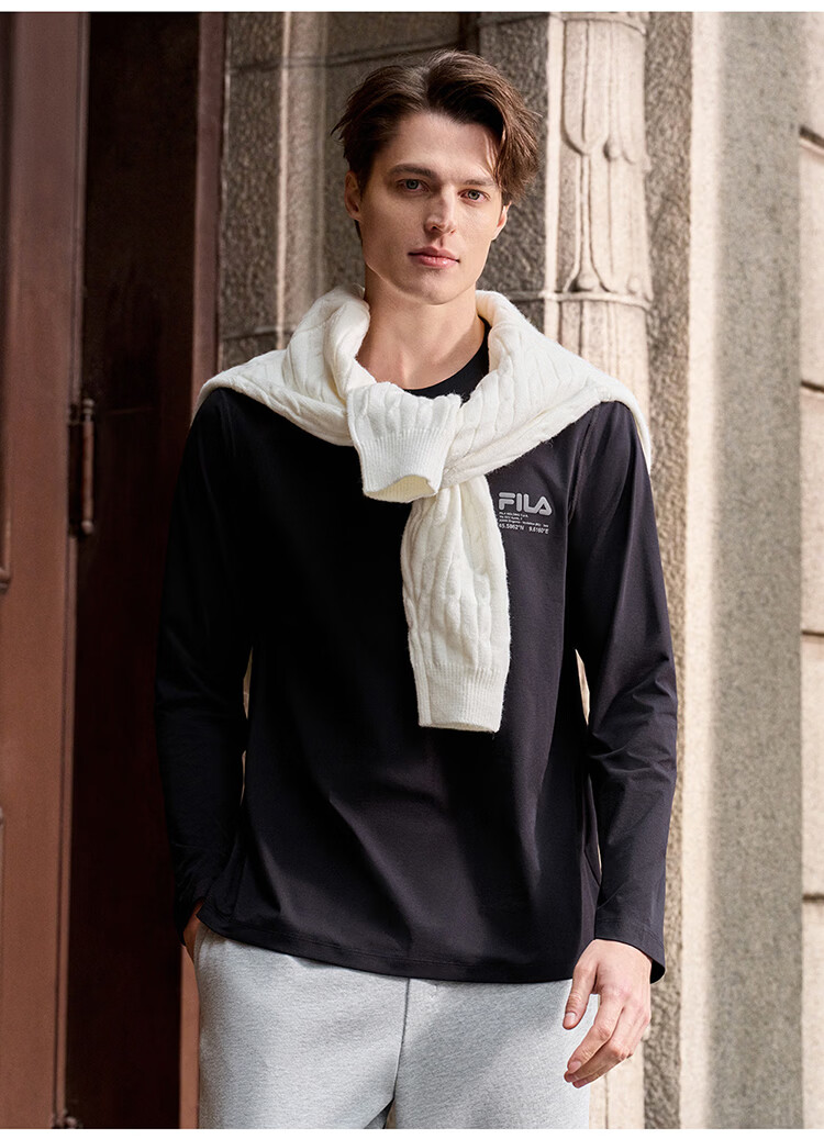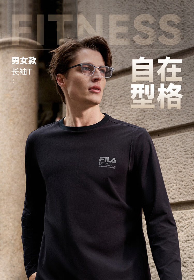 FILA 斐乐官方男子针织长袖衫2026春新款男女同款吸湿速干圆领长T