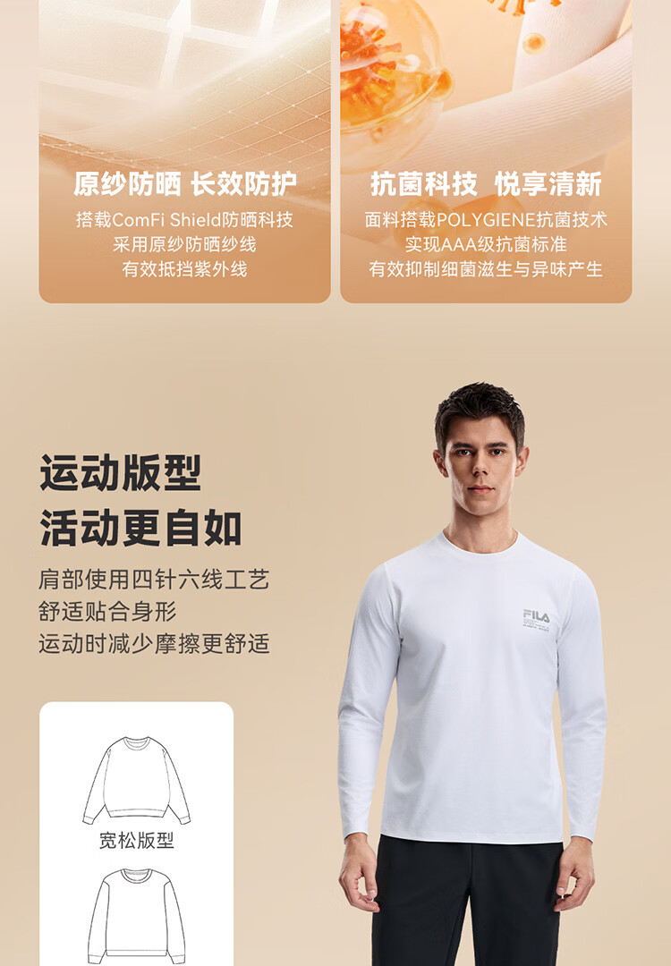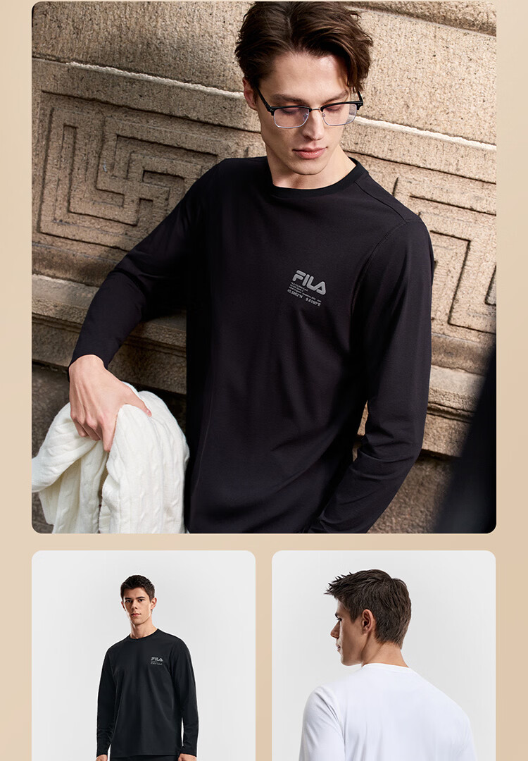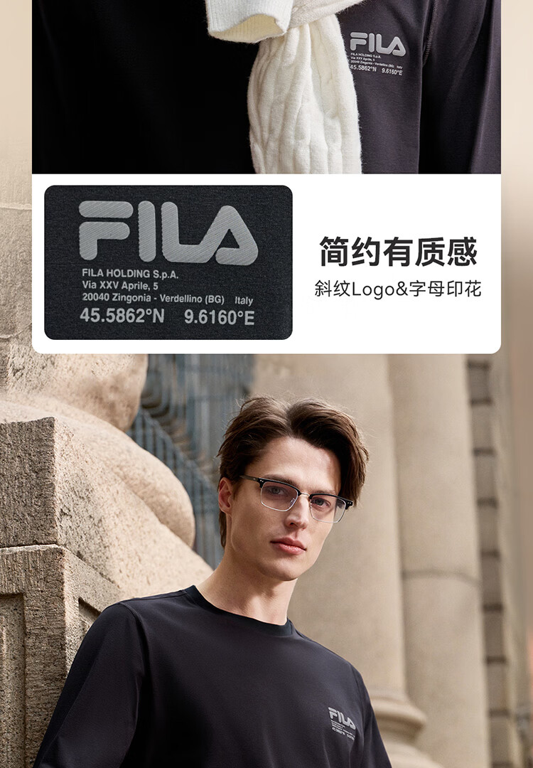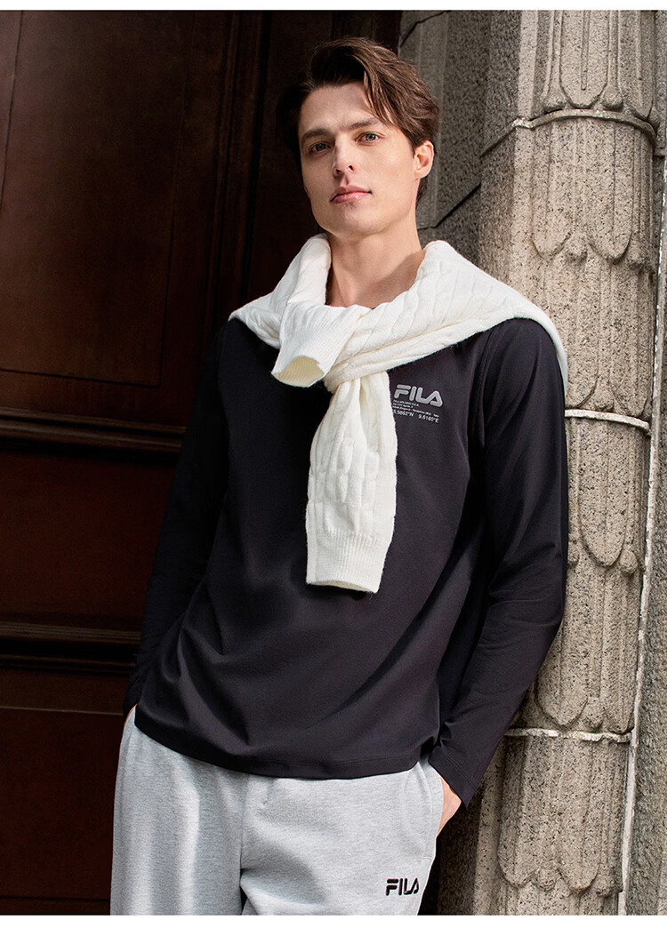 FILA 斐乐官方男子针织长袖衫2026春新款男女同款吸湿速干圆领长T