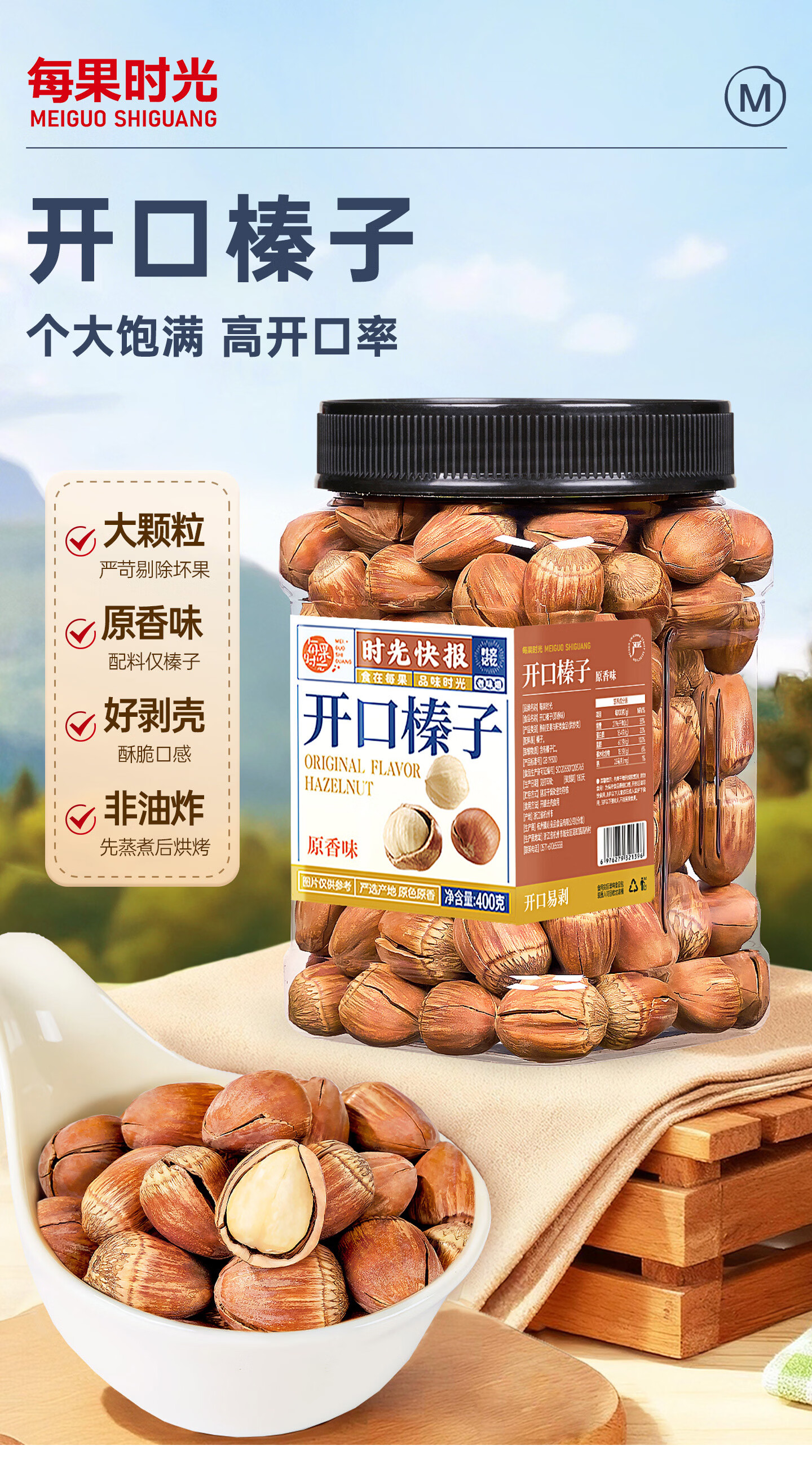 每果时光开口大榛子400g原味炒熟东北榛子仁每日坚果炒货干果休闲零食年货