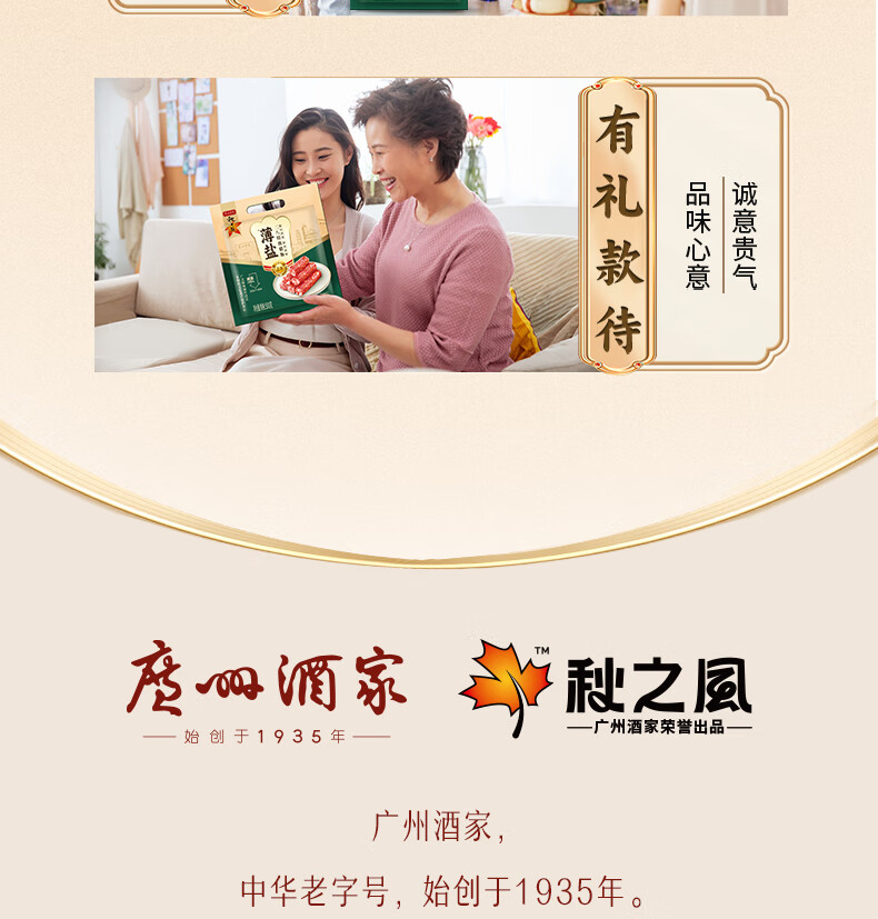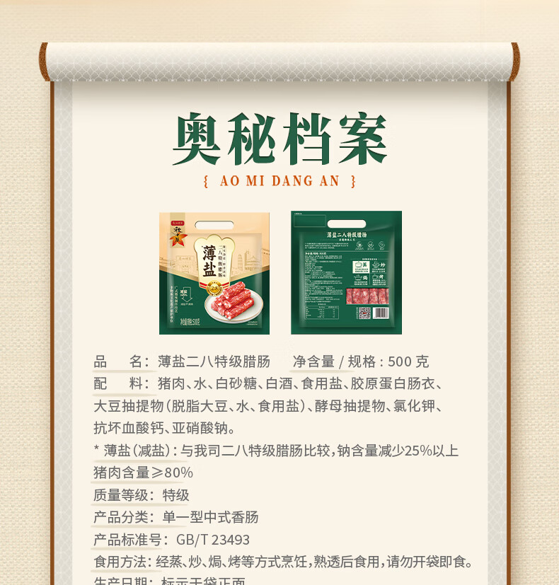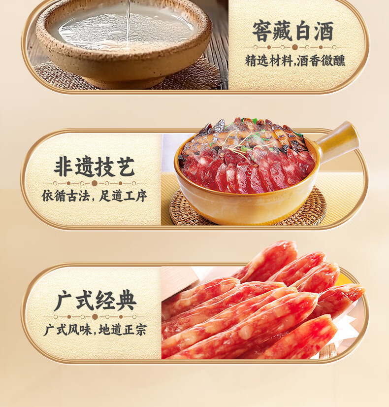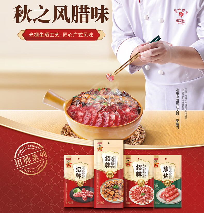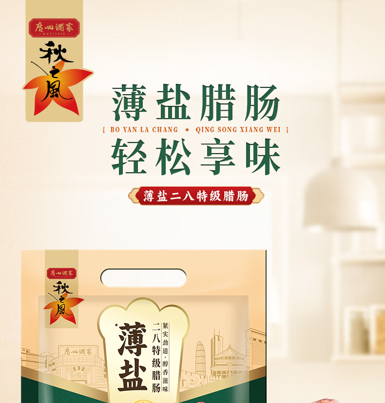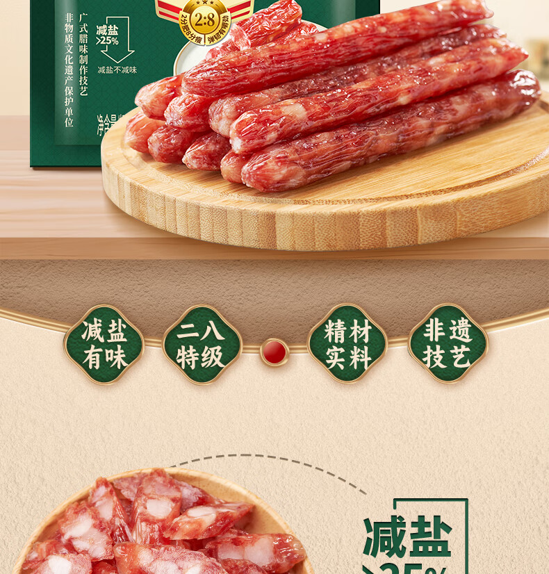 广州酒家薄盐二八特级腊肠500g 广式特产香肠腊味年夜饭年货过年送礼团购