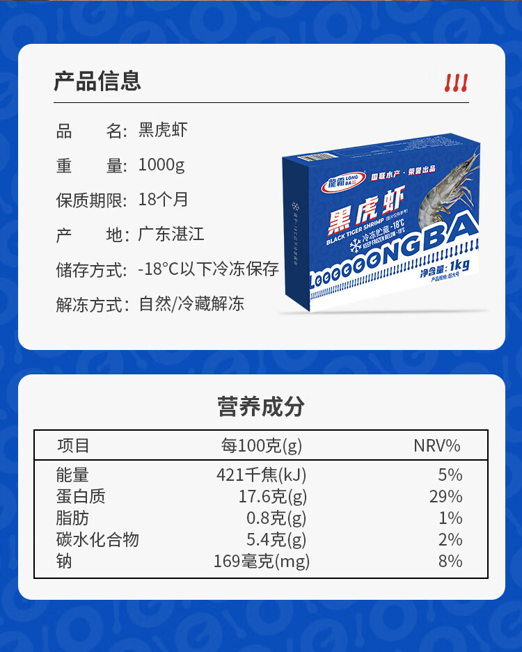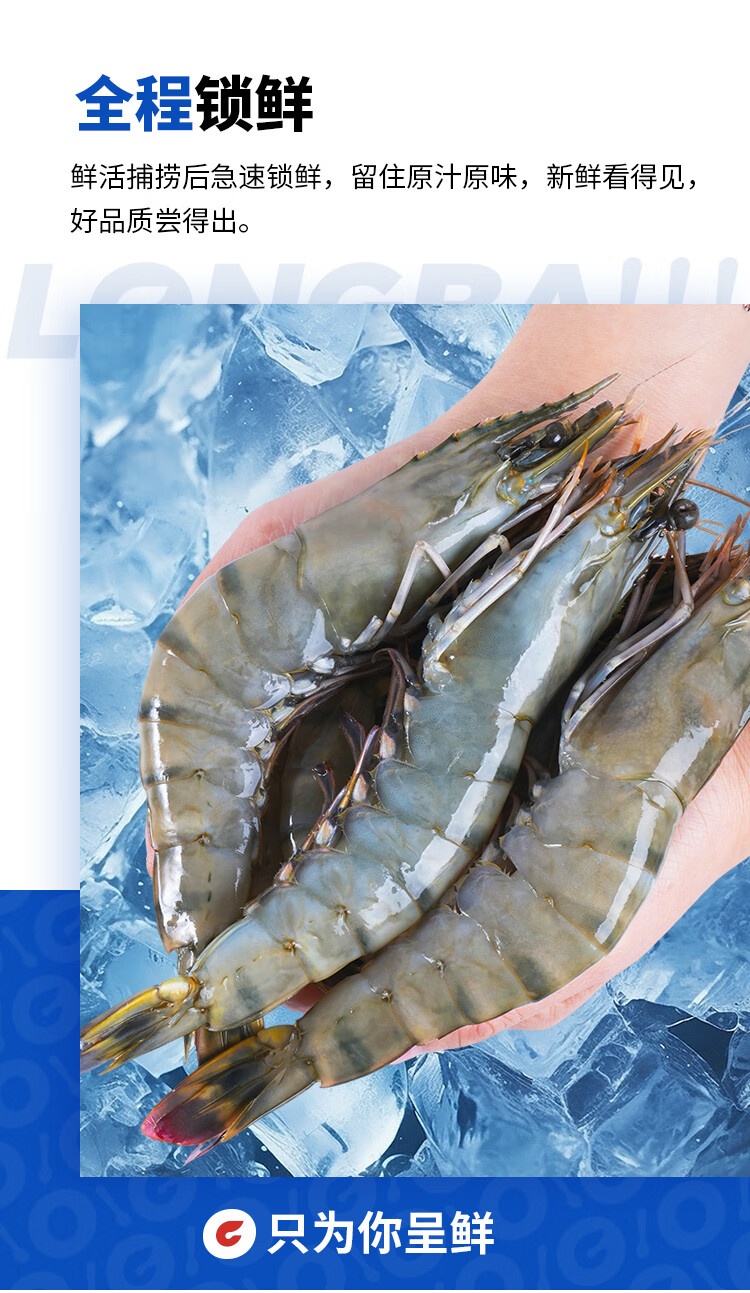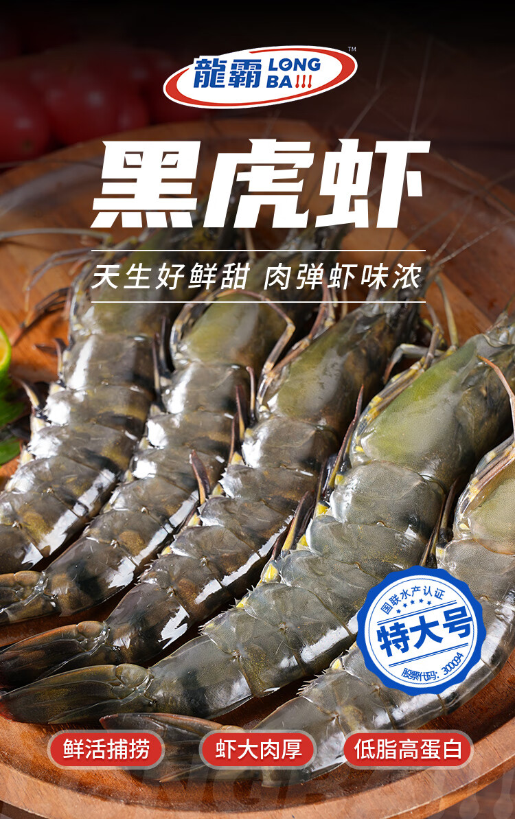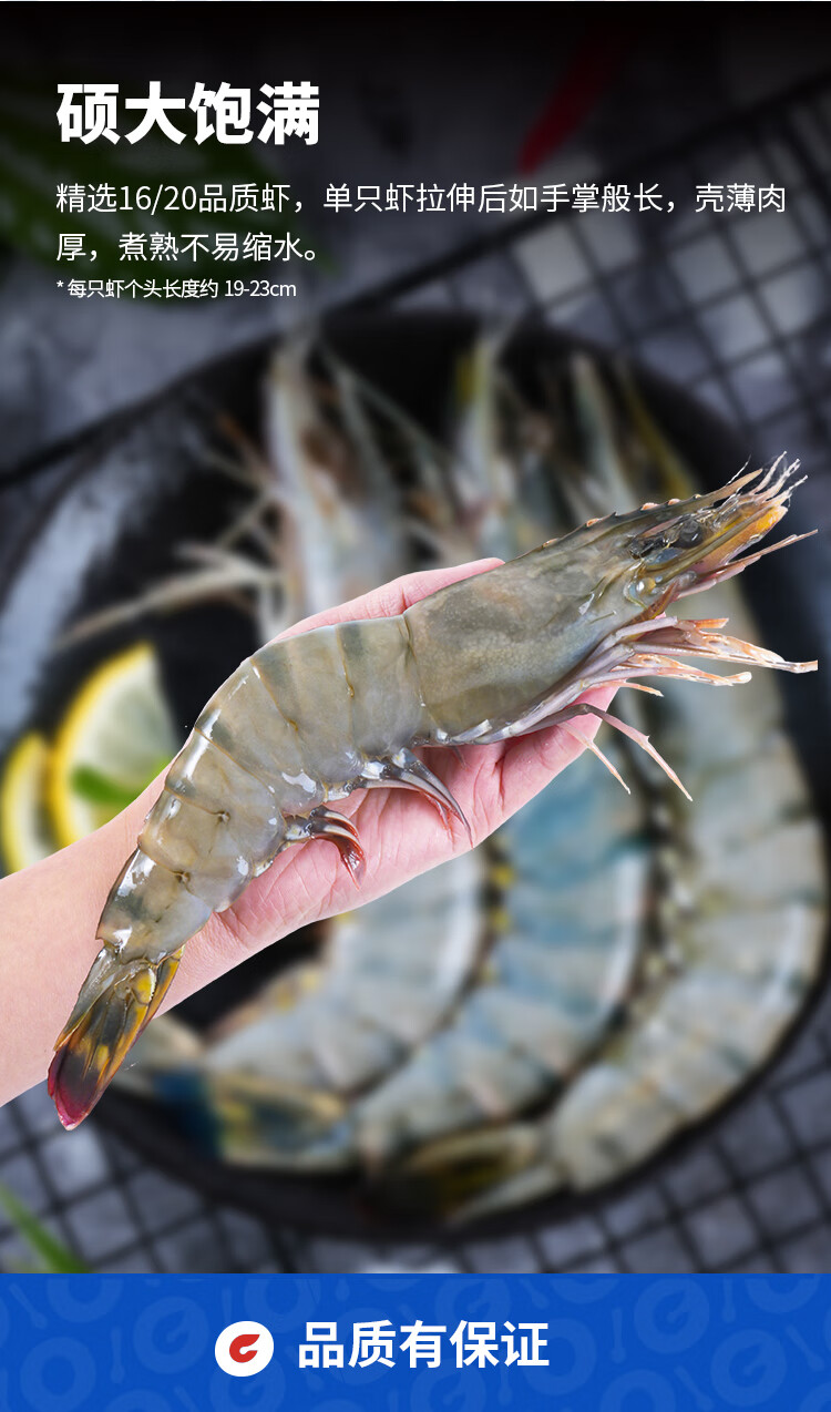 GUO LIAN国联 黑虎虾超大规格斑节虾无冰净重2斤 16-20只高虾青素年货送礼