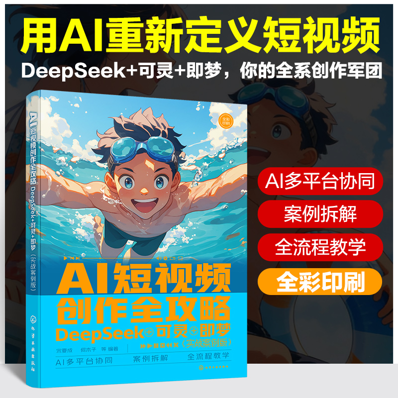 《AI短视频创作全攻略:DeepSeek+可灵+即梦(实战案例版)》是一本聚焦多种AI工具协同创作的实战手册,致力于解决创作者在短视频创作中面临的效率低、技术门槛高、创意落地难三大痛点。全书以DeepSeek(导演中枢)、可灵AI(视觉制作)、即梦AI(进阶创作)的协同框架为核心,通过全流程案例拆解,揭示AI工具在脚本生成、分镜设计、动态视觉、数字人配音、智能配乐等环节的高效分工。本书不仅帮助读者掌握短视频工业化生产技能,更提供AI时代的内容创作方法论,助力创作者从“执行者”升级为“AI导演”,在短视频浪潮中抢占先机,实现个人价值与商业收益的双重突破。