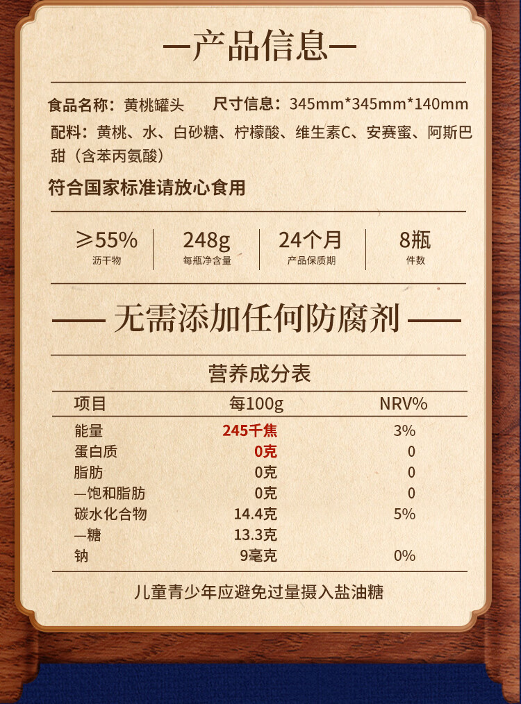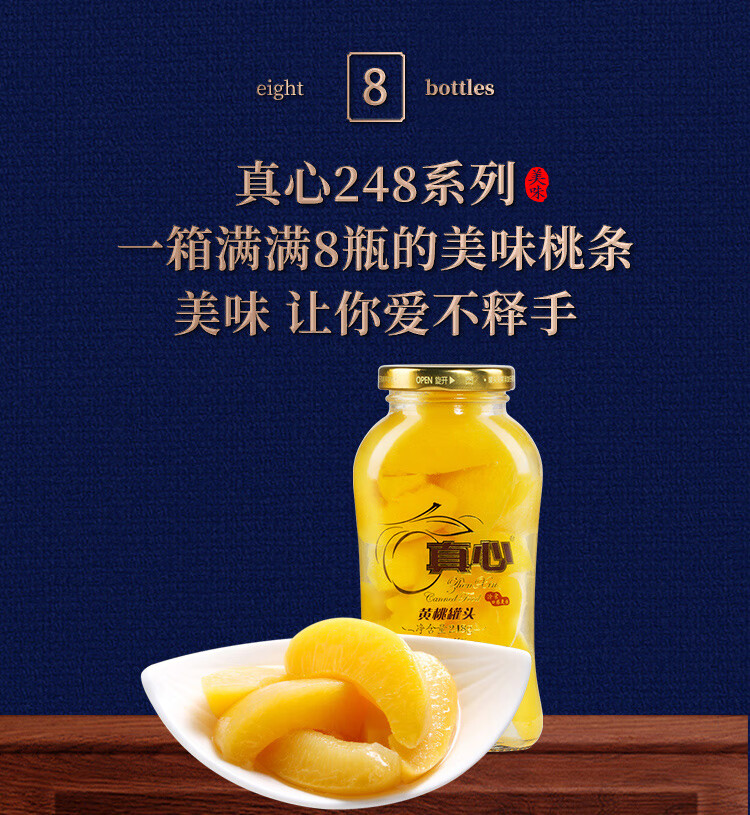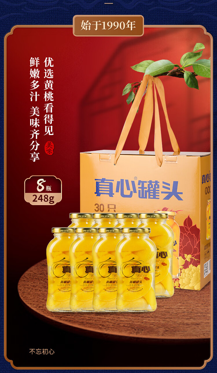 真心黄桃罐头248g*8罐水果罐头糖水饮料聚餐水果捞礼物送礼年货礼盒
