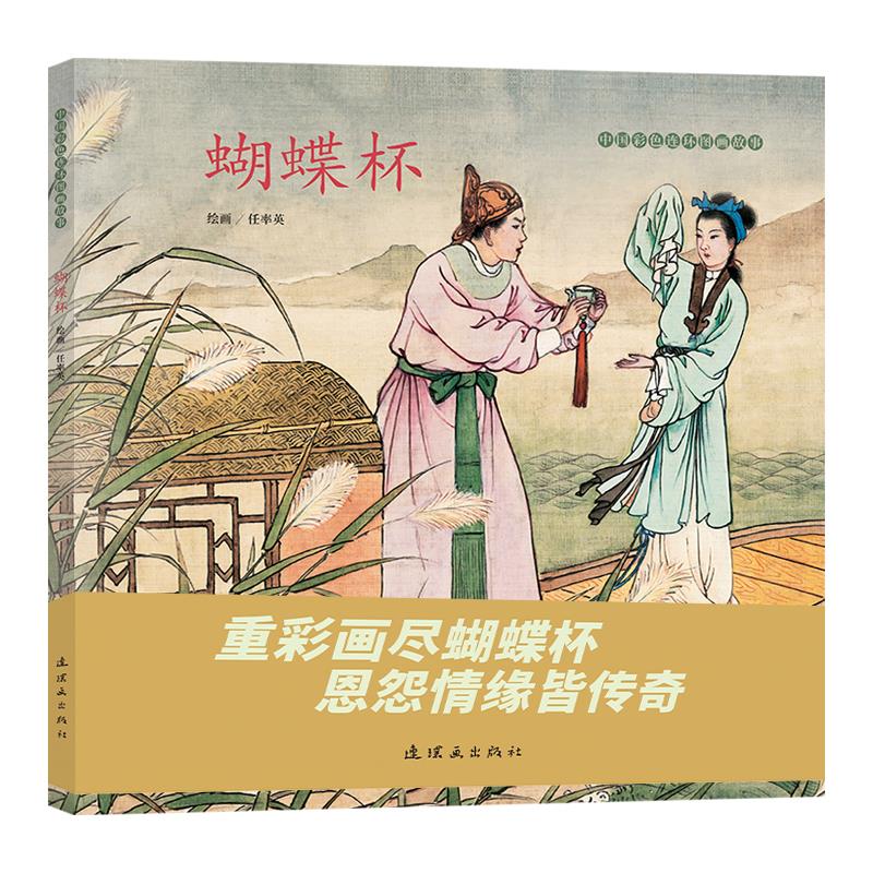 1958年,任率英先生创作了彩色连环画《蝴蝶杯》,将传统民间故事中的家国情怀、爱恨情仇、民族气节、民间智慧赋予新的文化内涵和生命力。这套连环画采用工笔重彩的绘画形式,画面结构讲究,用笔流畅生动,设色准确和谐,通过对人物表情、动作和姿态的细腻入微的刻画,生动地表现出人物丰富多变的情感变化,使读者能够深刻真切地感受到故事中人物的喜怒哀乐。