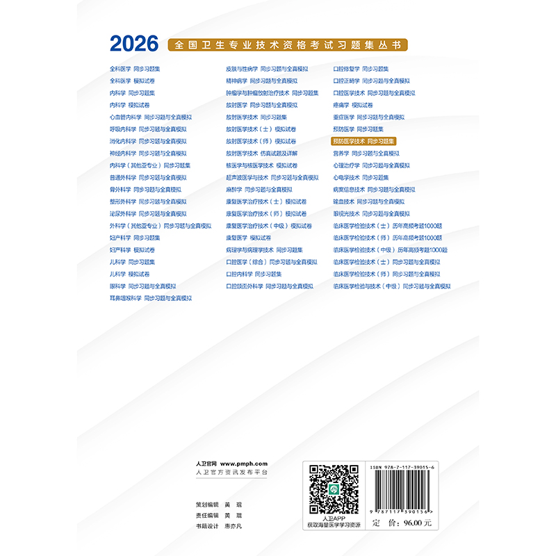 本书为全国卫生专业技术资格考试习题集丛书,以最新考试大纲和全国卫生专业技术资格考试专家委员会编写的考试指导为编写依据,以帮助考生熟悉和掌握专业知识、提高从业人员能力和素质为主要目的,切实反映考试对考生在知识点掌握程度和专业水平上的要求。其按照考试大纲各科目和考试指导的章节编写,题型全面,题量丰富,涵盖考试大纲的所有知识点,并着重突出重点、难点,帮助考生随学随测,检测学习成果,强化记忆。部分习题附详细解析,全面分析考点、答题思路和方法,帮助考生尽快理解和掌握知识点,是考生复习强化的必备用书。