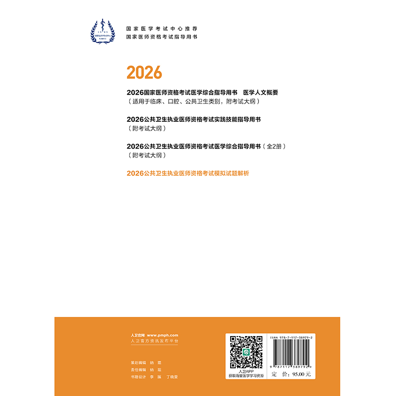 1.本书是国家医考中心唯一推荐指导用书,权威性高。2.指导性强,紧密结合医师资格考试方案的调整方向和人民卫生出版社最新国家规划教材的修订内容;3.内容全面,以考试大纲为基准,覆盖全部考点。4.重点突出,结合各类别医师胜任力特点和准入基本要求,更加突出各自考核要点。5.品种齐全。临床、口腔、公共卫生的执业医师和执业助理医师以及乡村全科执业助理医师的考生均有对应的指导用书。6.实用高效,结合国家规划教材的编修原则,重点突出,逻辑清晰,方便考生全面复习,有效提高专业能力。