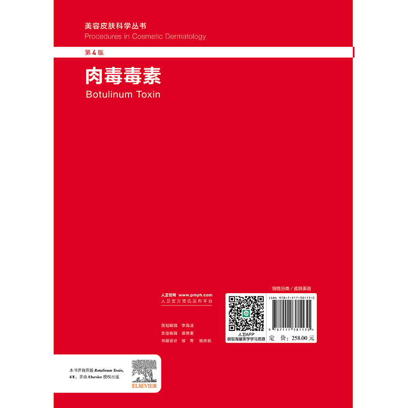 1.从理论到实际操作详细阐述了肉毒毒素应用的方方面面,配有详细对比表格及高质量插图。 2.原著为国际经典美容皮肤科学丛书的分册,是相关从业人员必备参考书。 3.本书内容实用,重点突出,作者团队和翻译团队专业。
