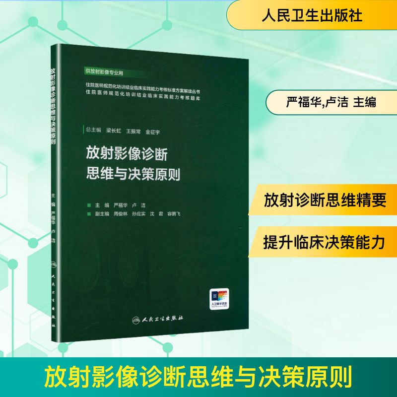 放射影像专业住院医师规范化培训结业临床实践能力考核标准方案解读丛书;放射影像专业临床实践能力考核题库”将由中国医师协会放射科医师分会候任会长梁长虹为第一总主编,中国工程院院士王振常为第二总主编,中华医学会放射学分会前任主任委员金征宇为第三总主编。中国医师协会放射科医师分会常务委员及委员担任分册主编。丛书共分为12个分册,各分册分别对应建立相应的题库(临床阅片实战场景、视频操作和专家视频解读)。内容围绕:放射诊断基本功、放射诊断报告书写、临床思维与决策、实践技能操作和临床医患沟通。其中临床思维与决策是核心问题。本分册通过细分的“影像诊断分析总体原则”“影像诊断思维与方法”“临床实践活动中的临床思维的提升”等多部分内容,对相关问题核心问题进行详细讲解。同时对影像医学规范化培训结业考试涉及的其他问题作概述。病例库内容包括典型病例全套的DICOM图像+病例讲解。