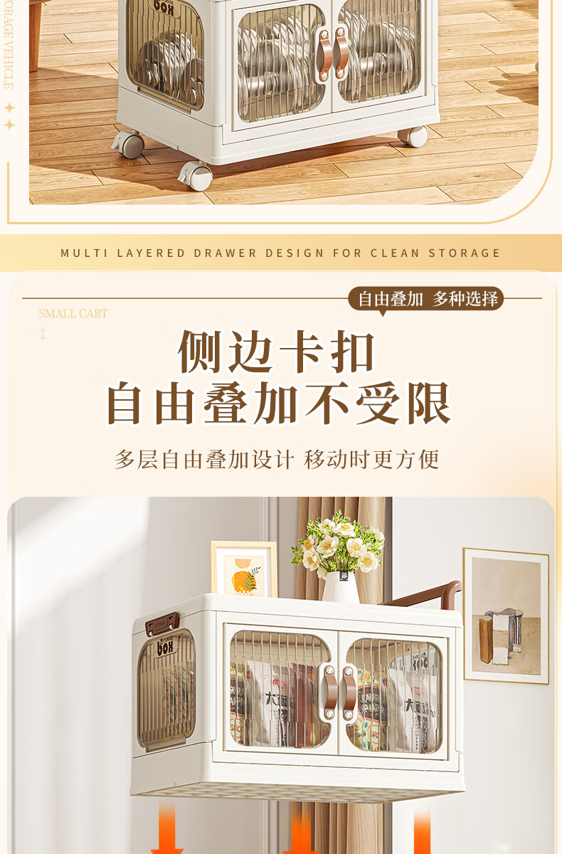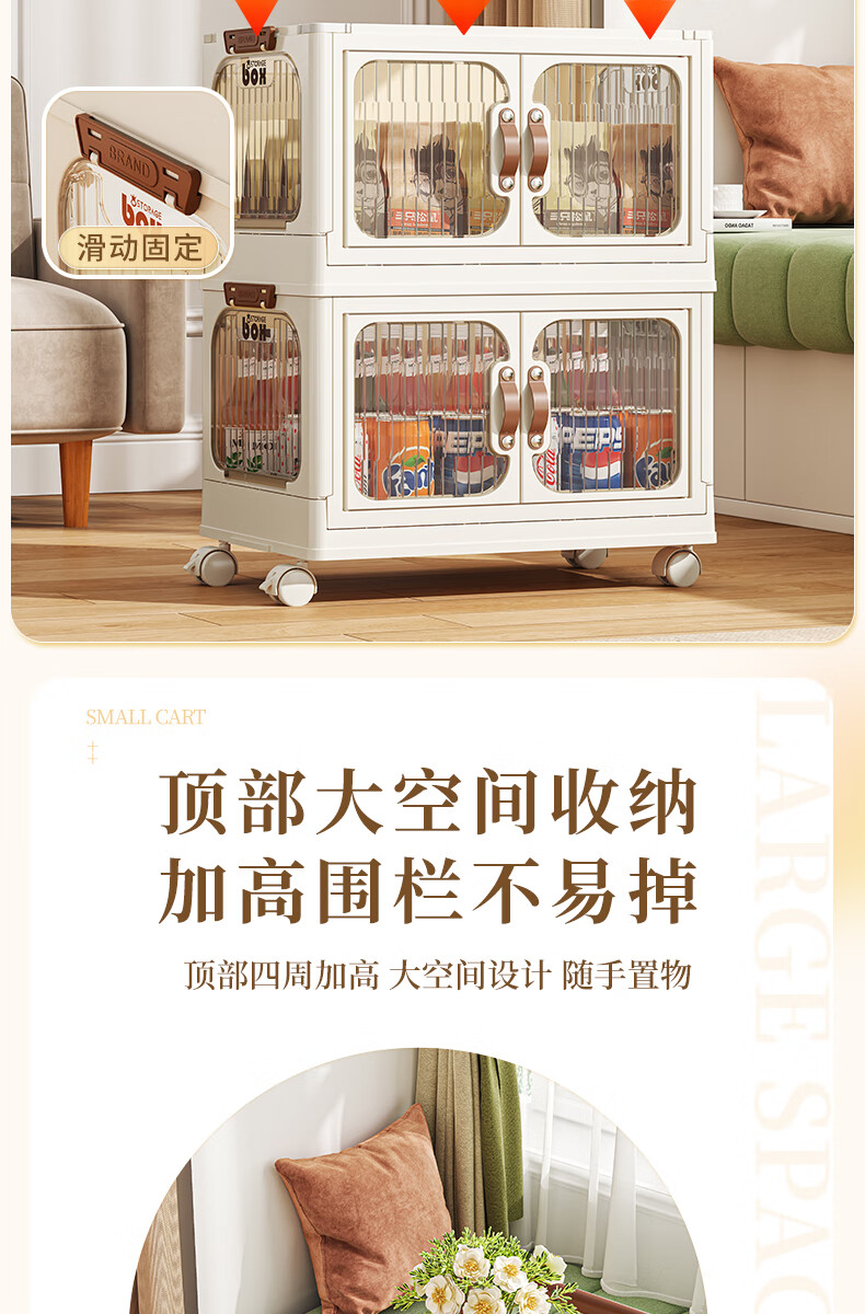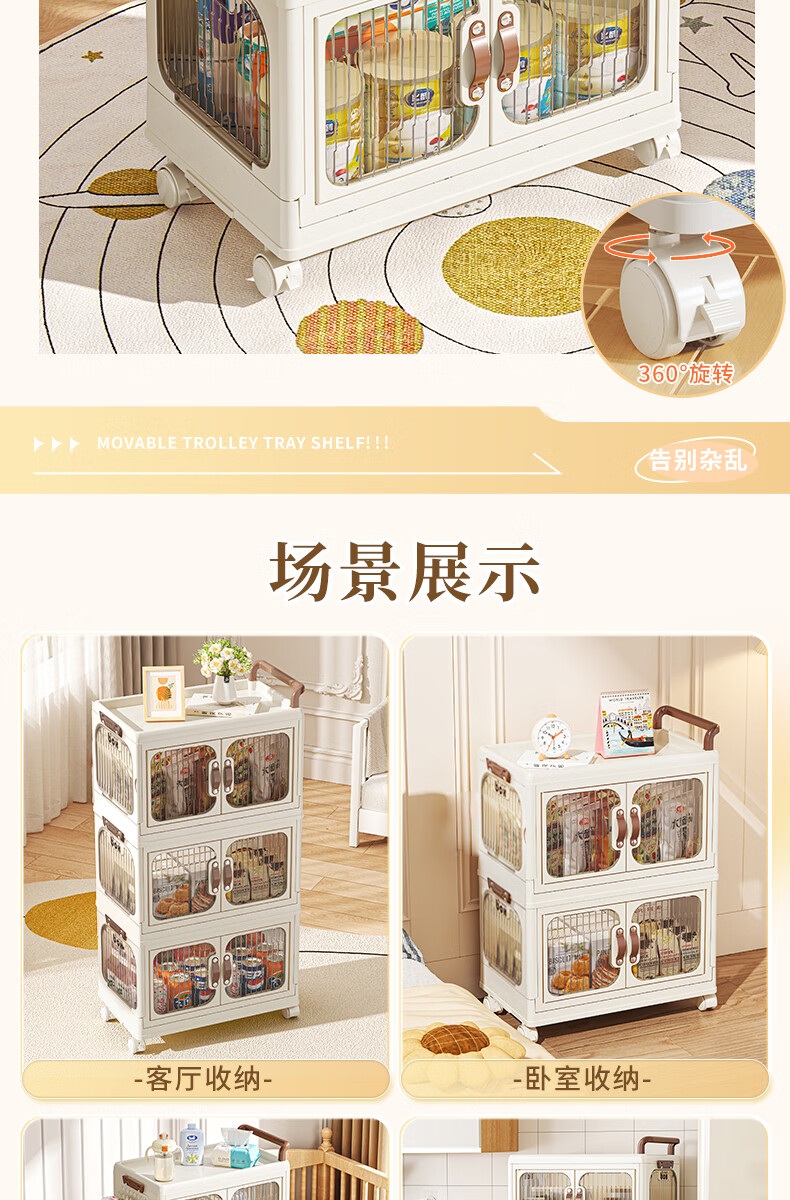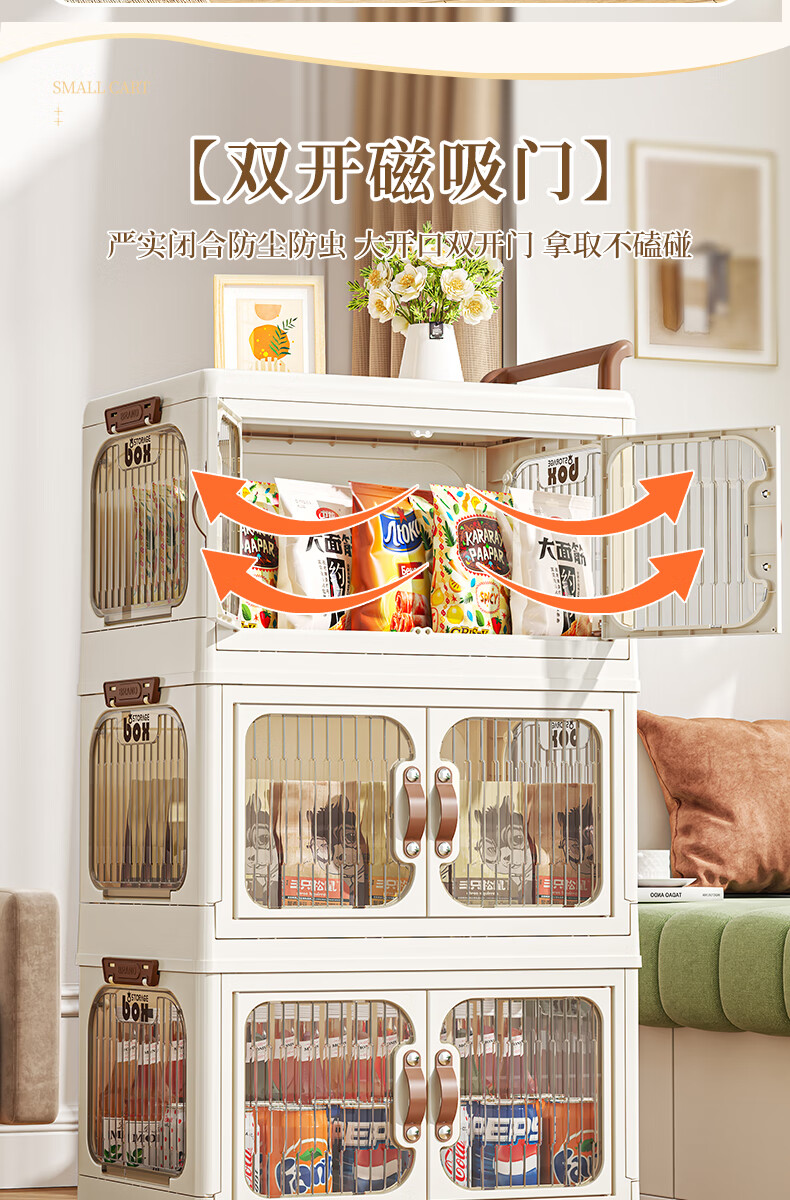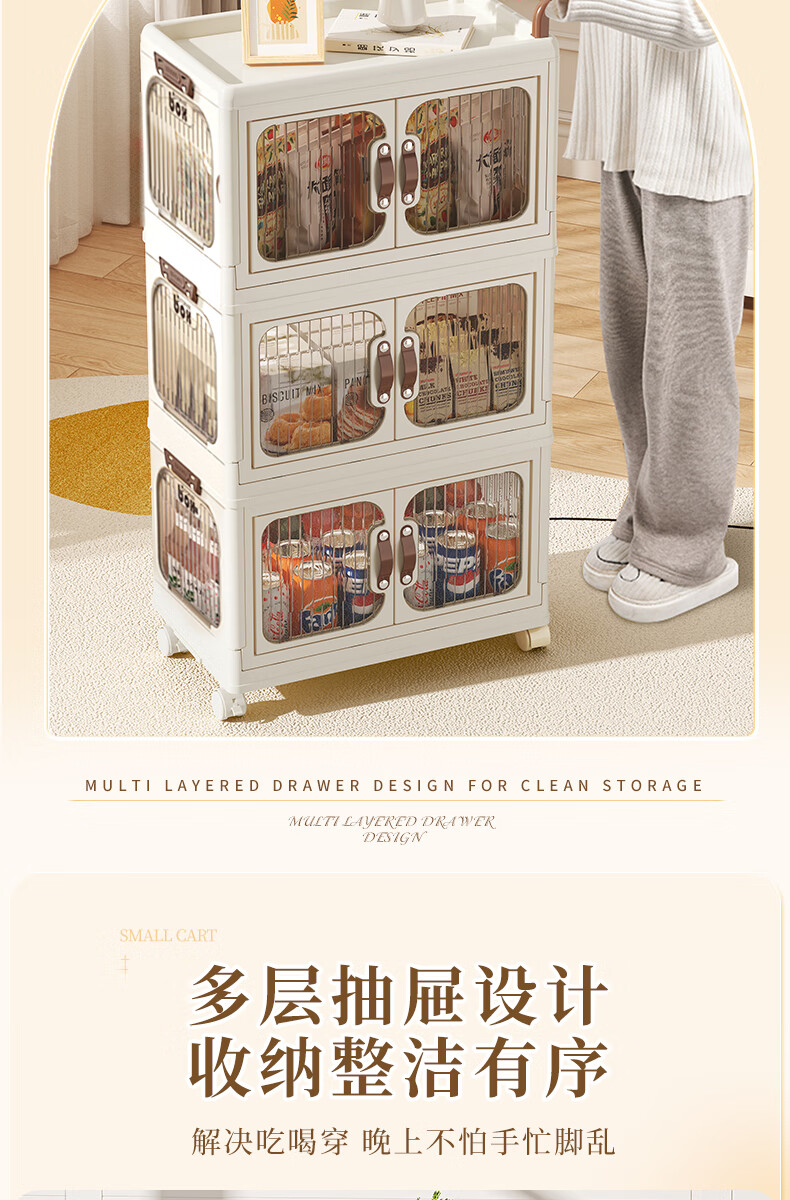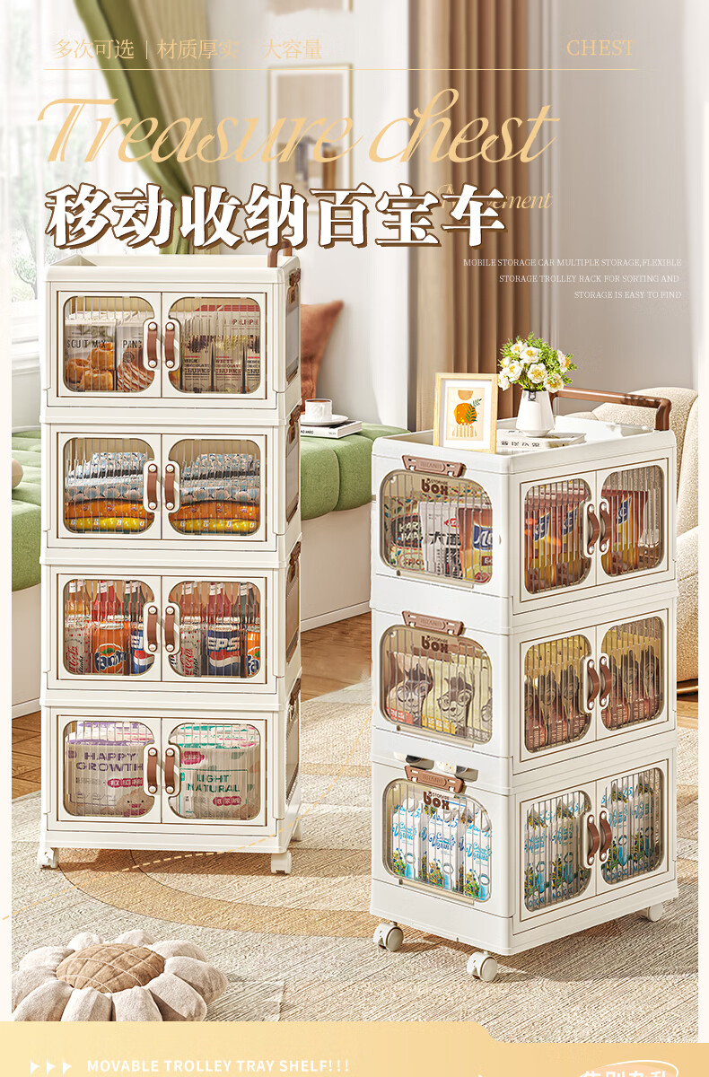 好尔小推车收纳柜大号可折叠储物箱玩具零食收纳箱置物架宝宝衣柜
