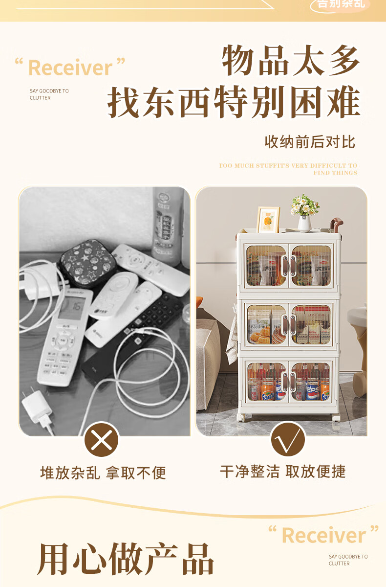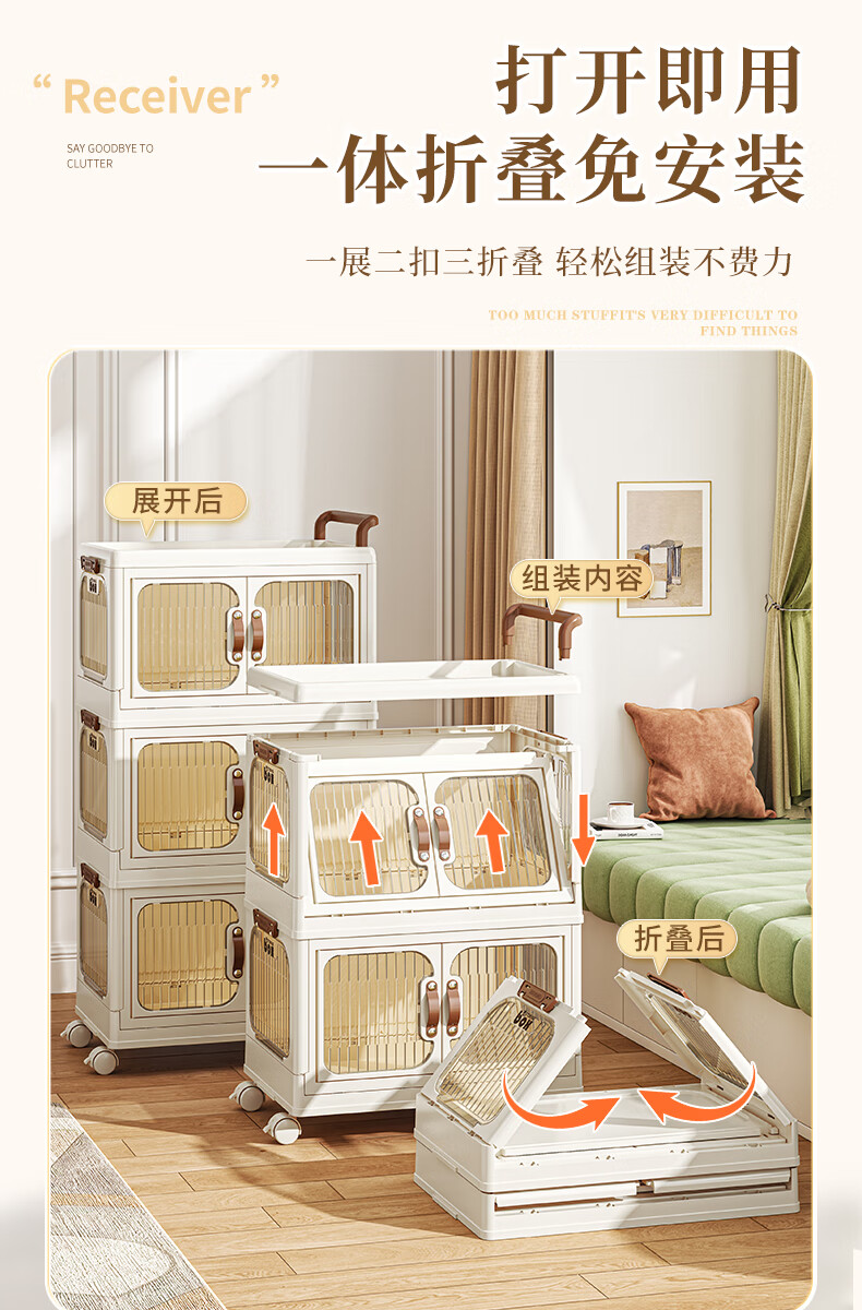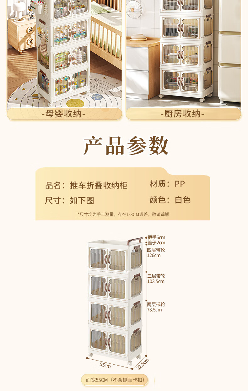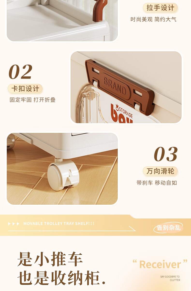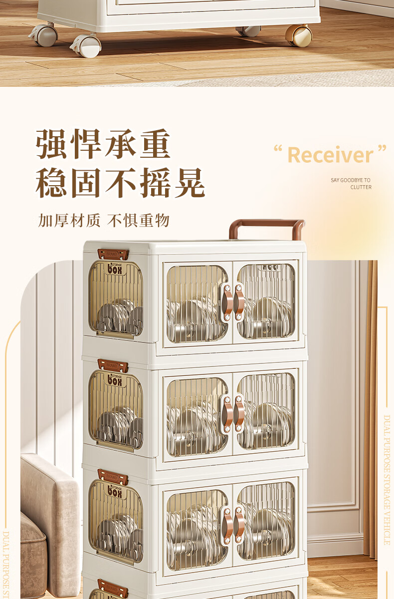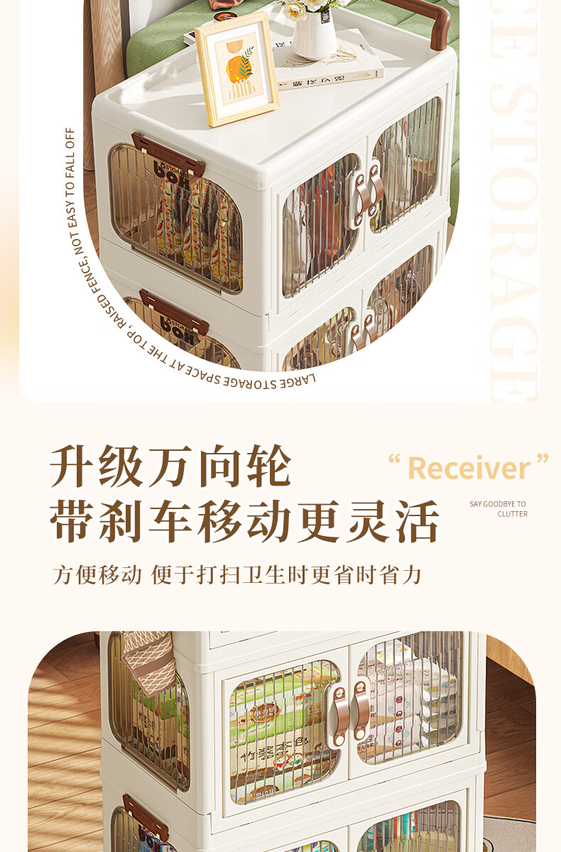 好尔小推车收纳柜大号可折叠储物箱玩具零食收纳箱置物架宝宝衣柜
