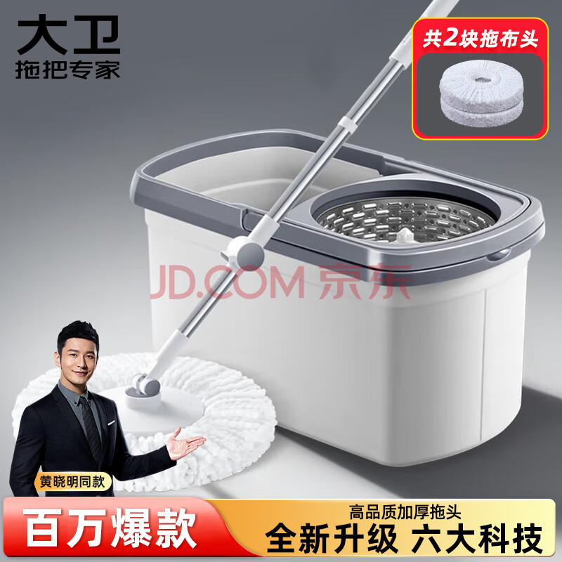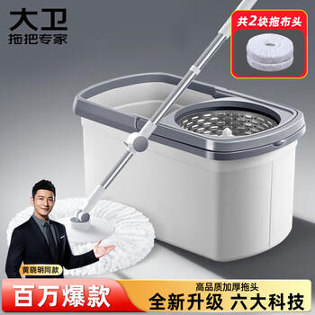 大卫旋转拖把36cm杆伸缩99-127cm 2头加厚拖布 D10双驱动免手洗