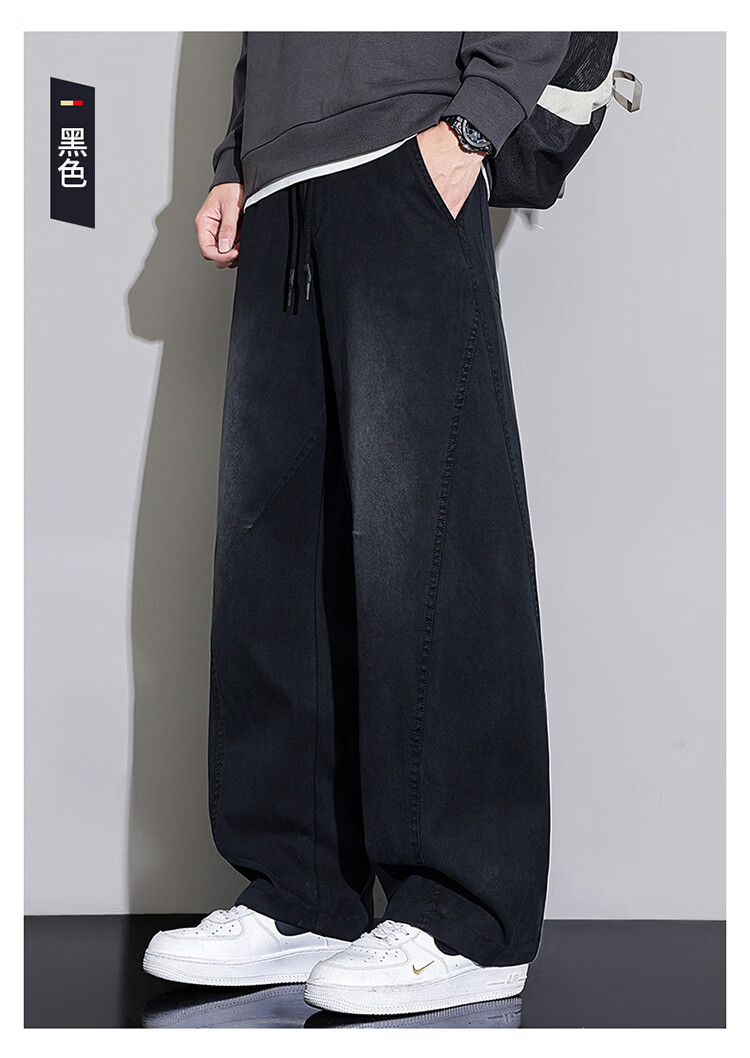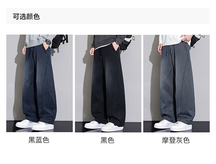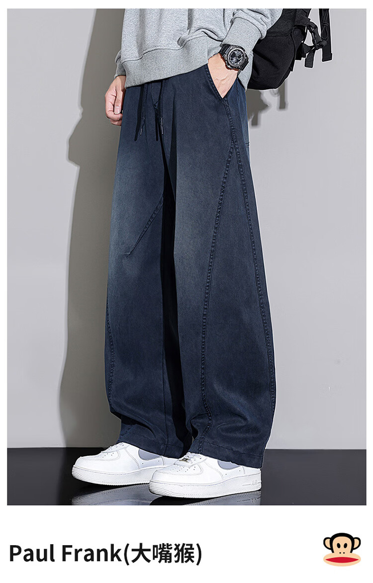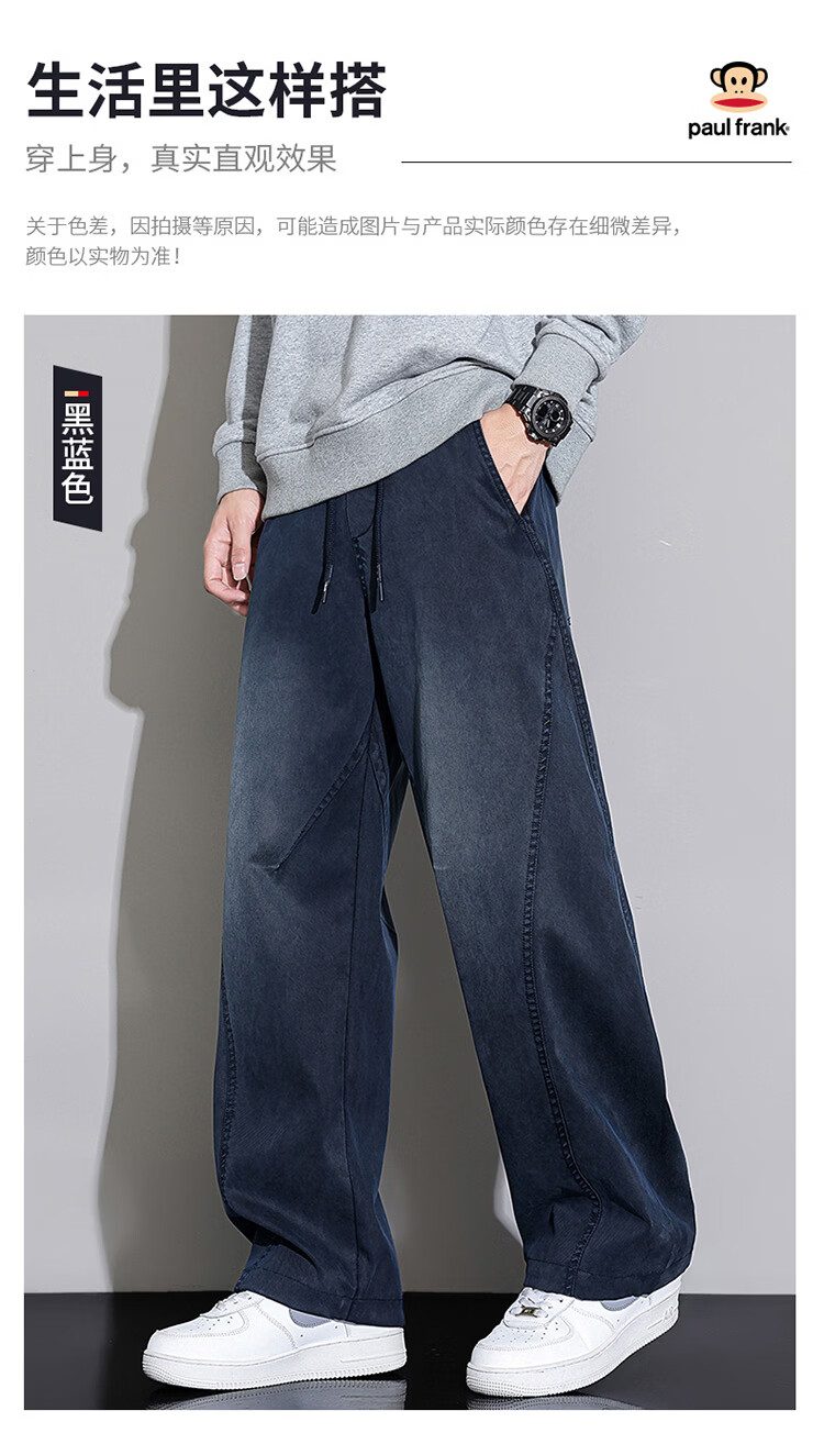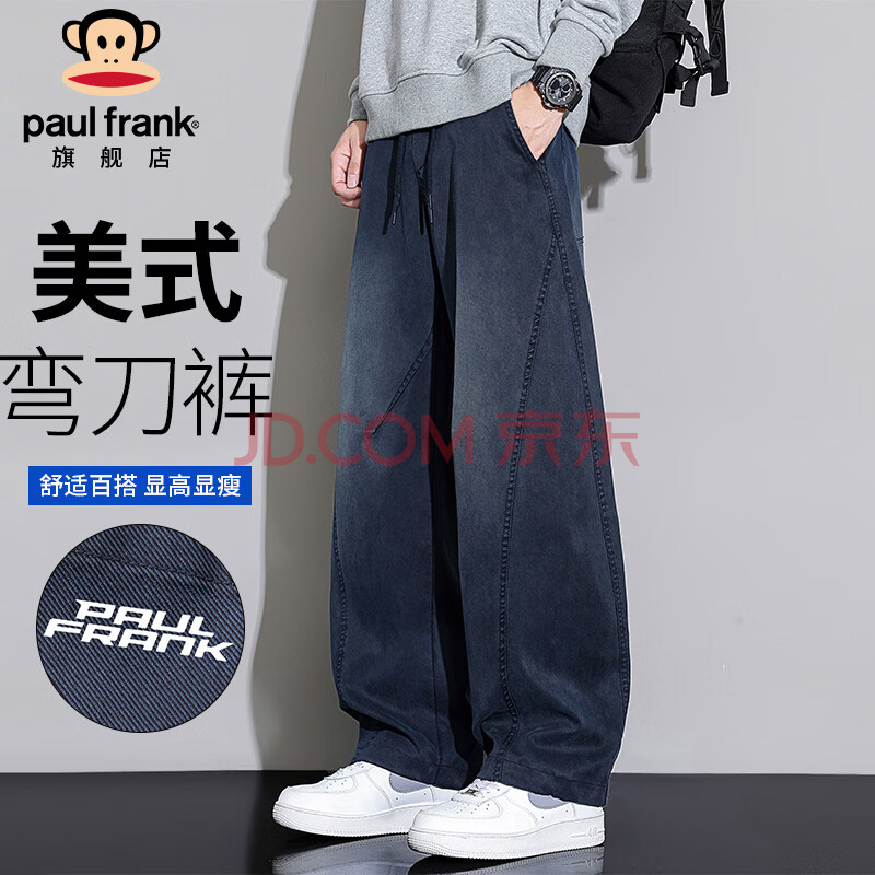 大嘴猴(paul frank)弯刀裤子男士冬季宽松阔腿休闲裤男潮牌男裤长裤 黑蓝色 L