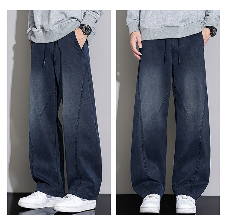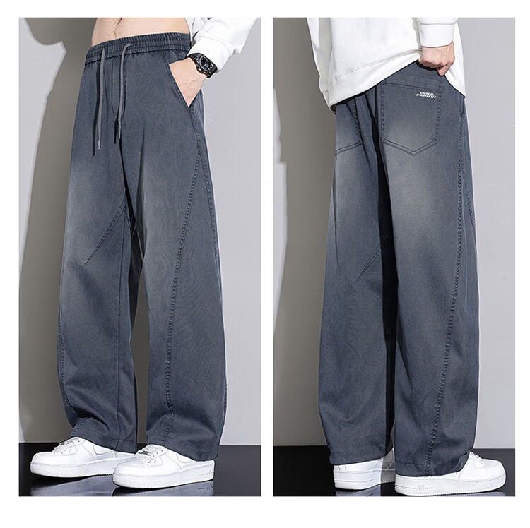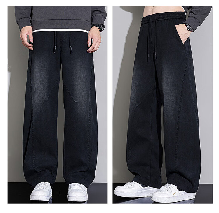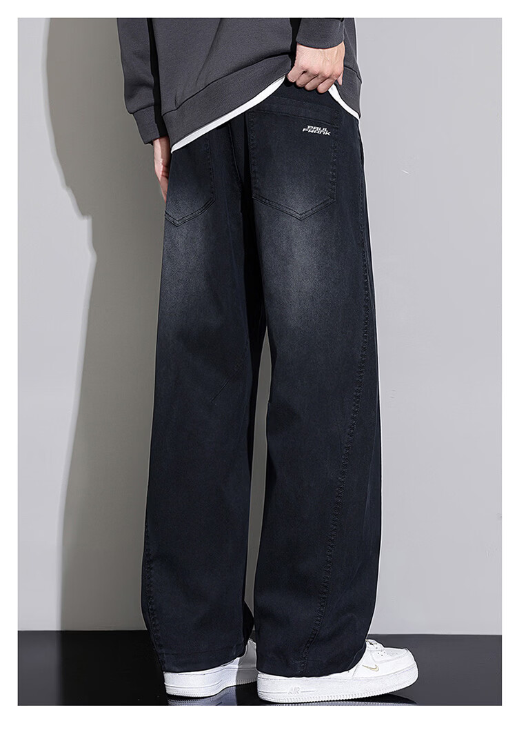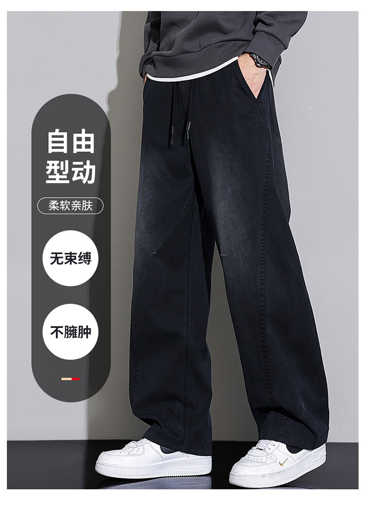 大嘴猴(paul frank)弯刀裤子男士冬季宽松阔腿休闲裤男潮牌男裤长裤 黑蓝色 L