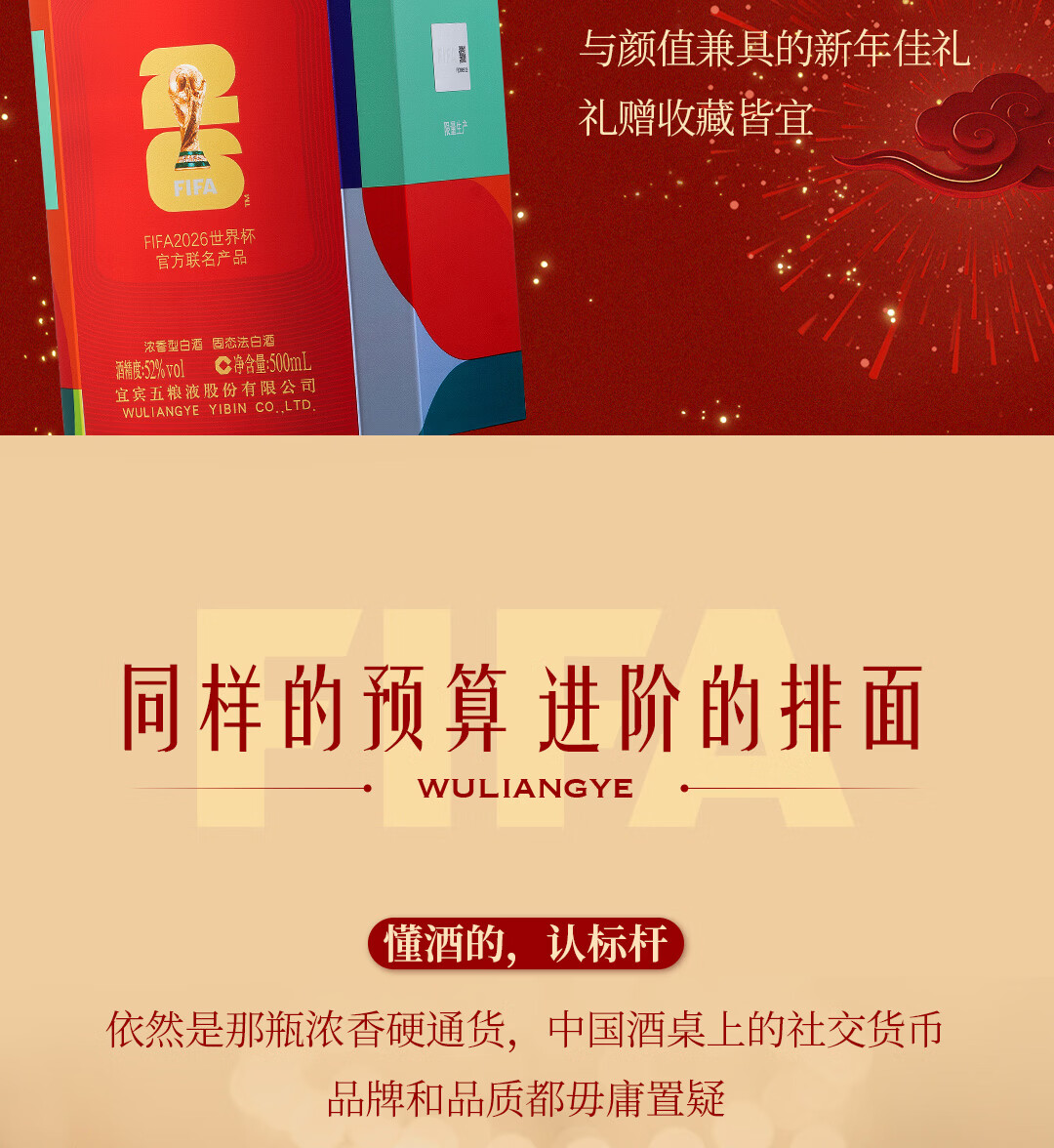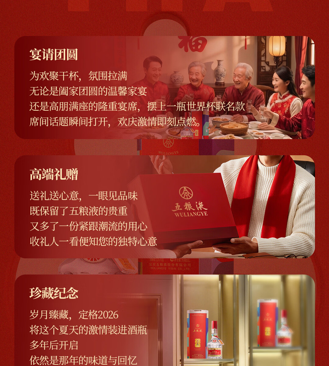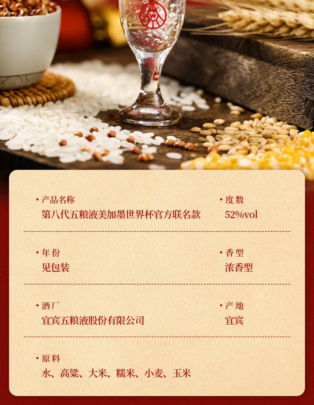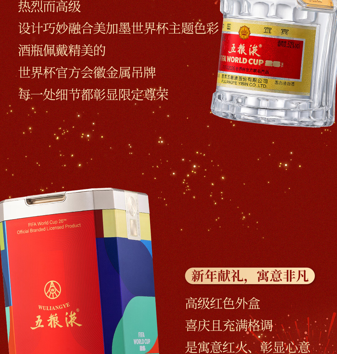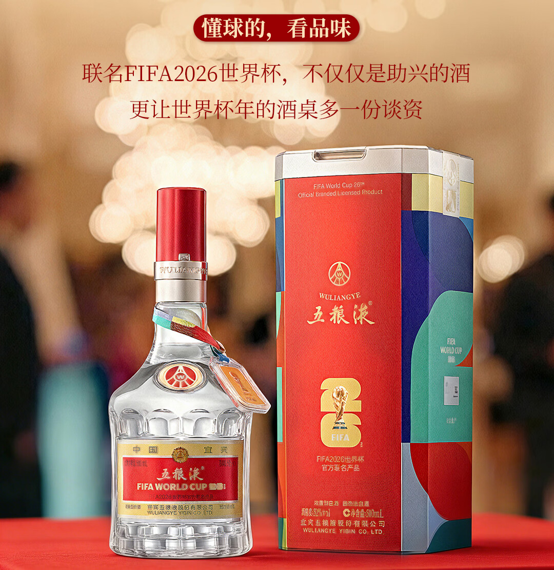 五粮液 普五八代 世界杯联名款 浓香型白酒 52度 500mL 单瓶装