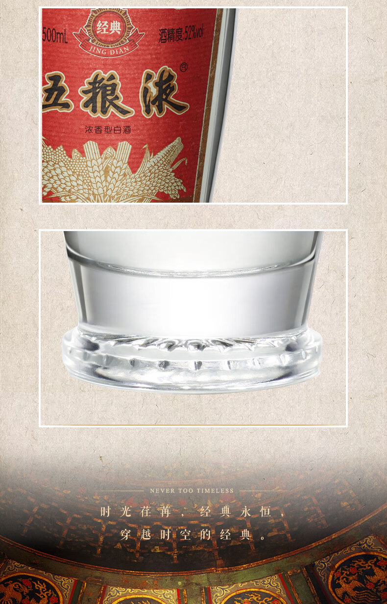 五粮液 经典 浓香型白酒 52度 500ml 单瓶装