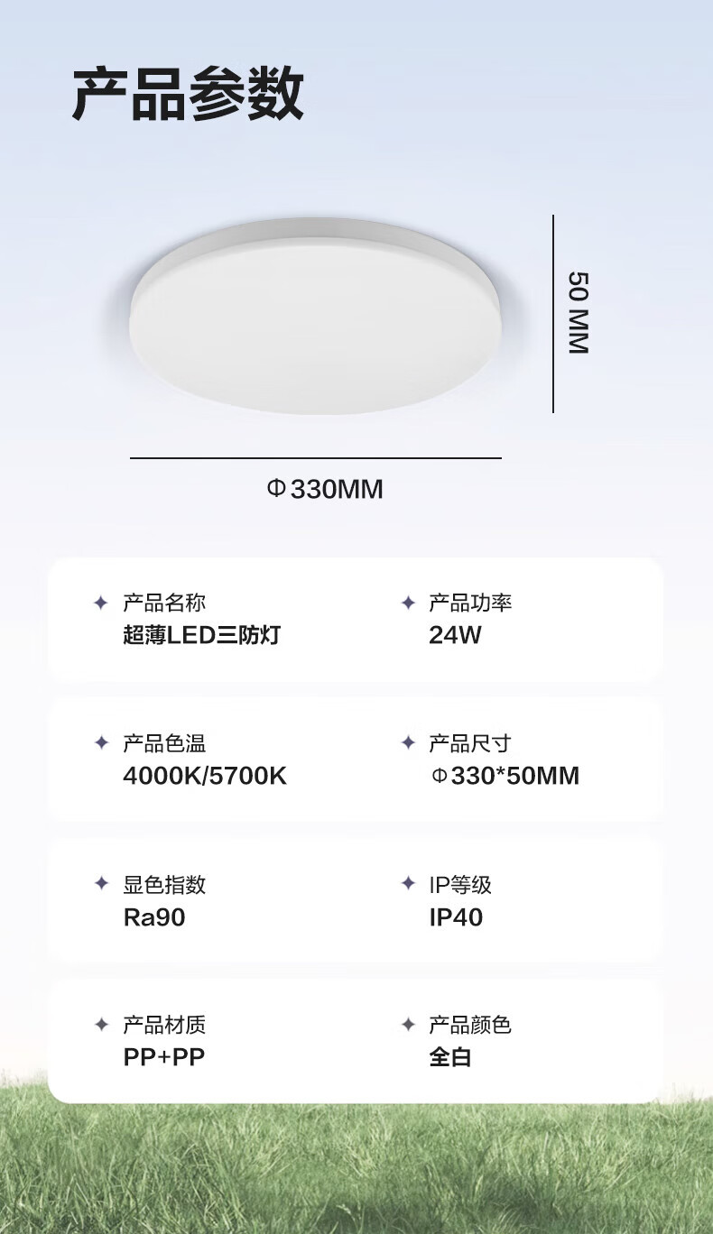 欧普照明(OPPLE)超薄LED防蚊虫无蓝光吸顶灯圆形白光24w 高光效高显指Ra90 尺寸330*50mm
