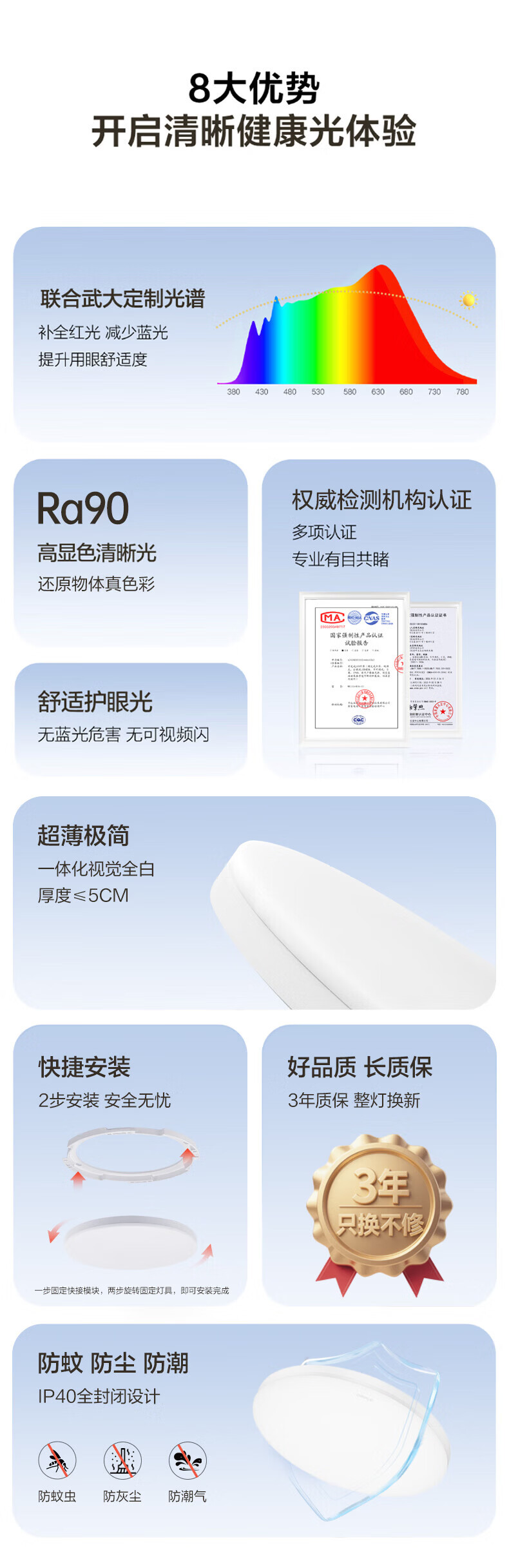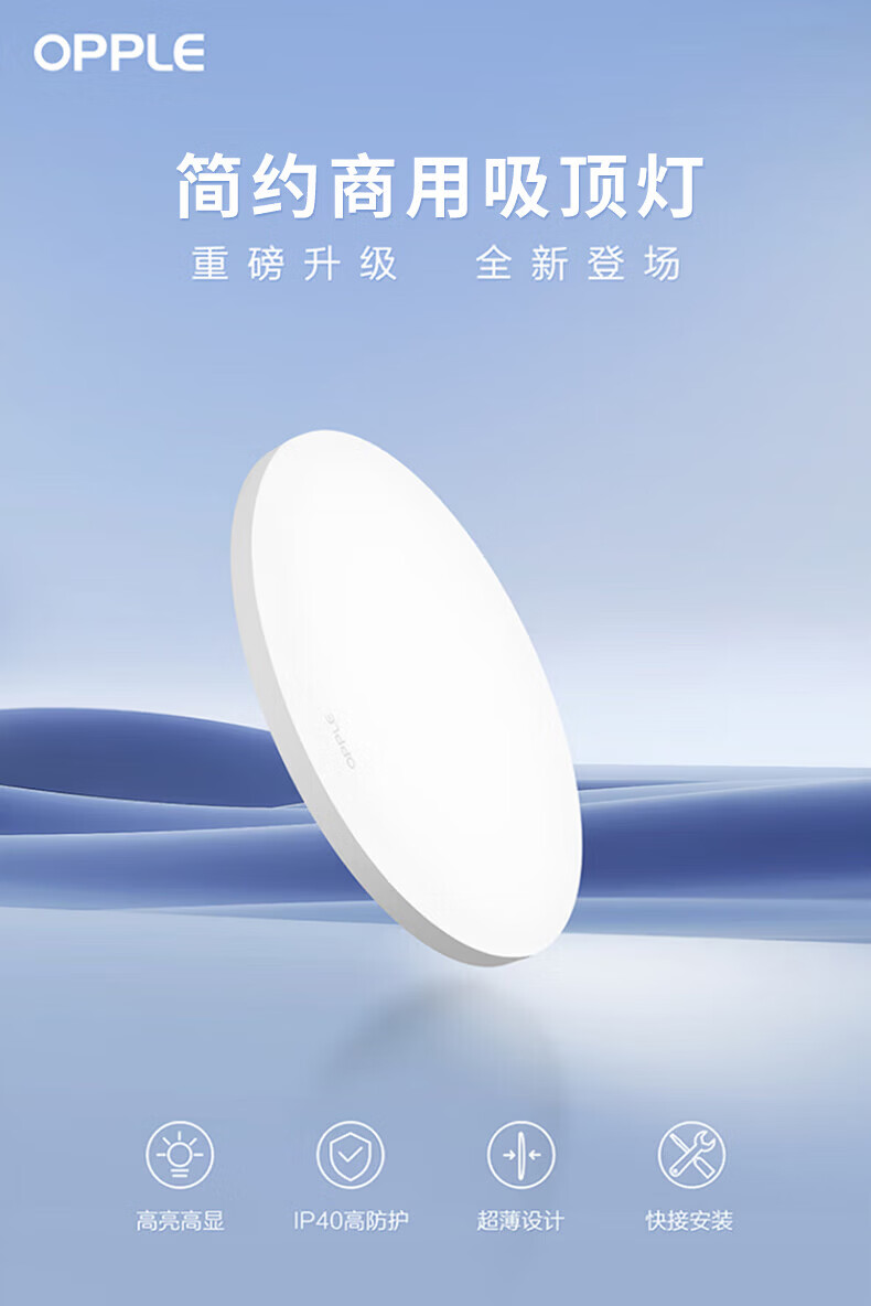 欧普照明(OPPLE)超薄LED防蚊虫无蓝光吸顶灯圆形白光24