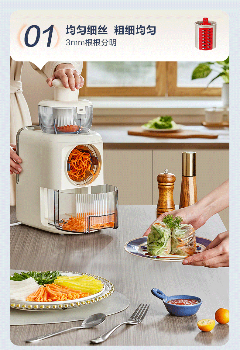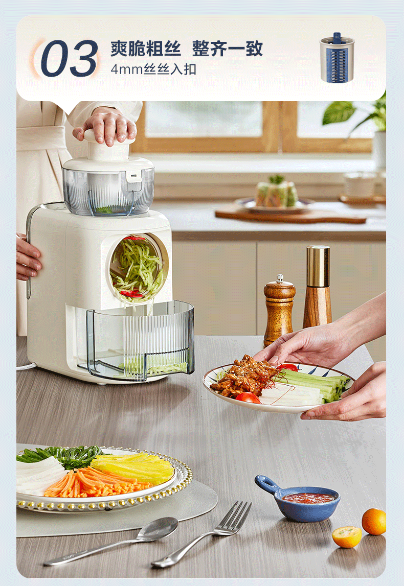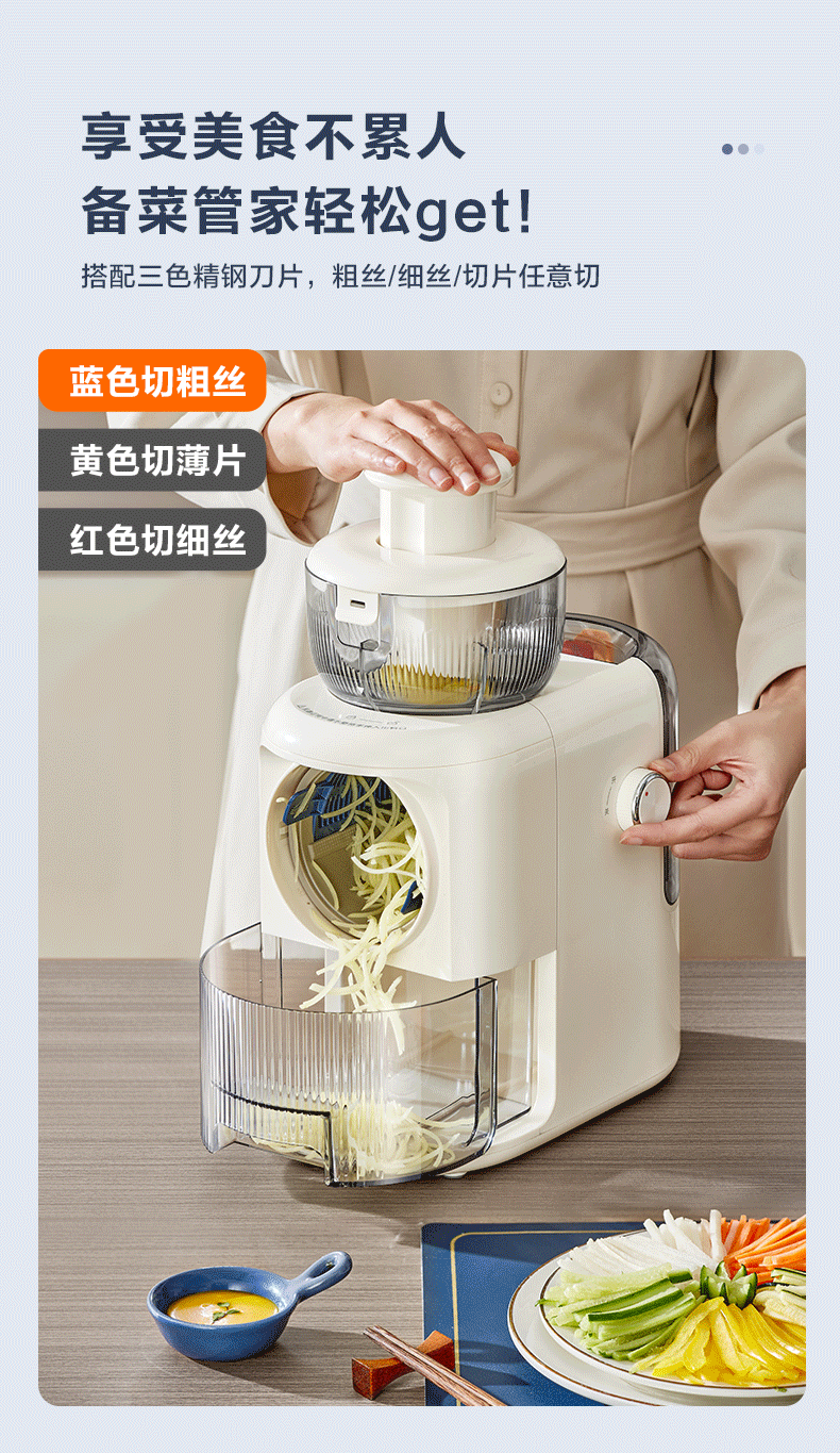 苏泊尔(SUPOR)电动切菜机 切丝器切片切土豆丝多功能家用 料理机可拆易清洁大容量擦丝器QC01