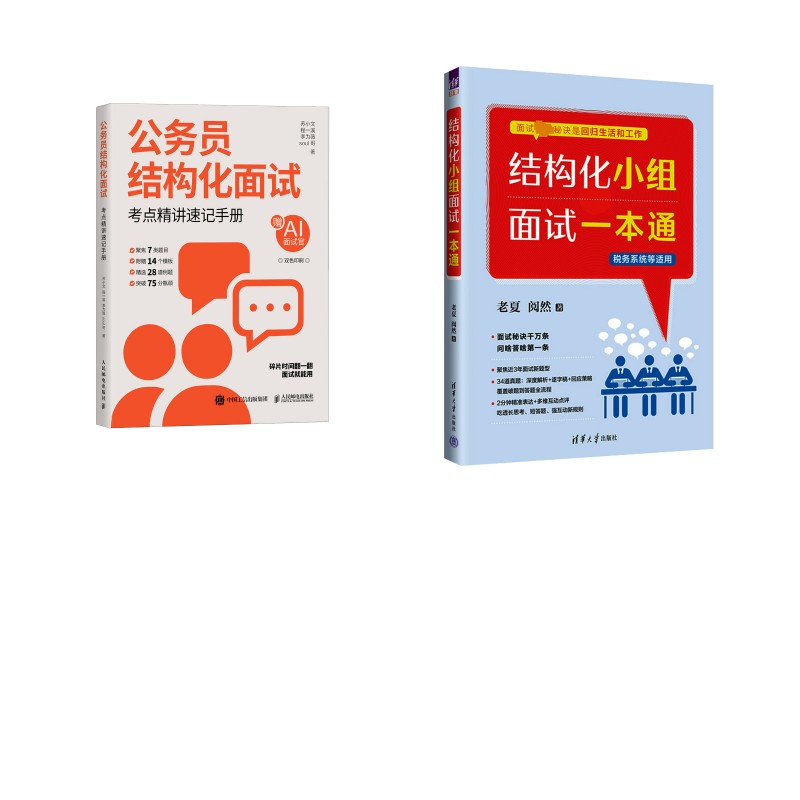 "老夏:有15年政府机关工作经历,先后在党委、政府4个部门工作,历任业务技术、行政后勤和综合文字等岗位。其首创的“问啥答啥”“回归生活和工作”“纵横十字法则”等公考面试方法,广受考生好评。自媒体百万大V博主,公众号“老夏说公务员面试”主笔人,常年在公考面试领域排名第一,B站、小红书、喜马拉雅、抖音同名账号运营者。先后出版公考面试类书籍4本,其中《老夏说公务员面试:100真题摆平面试》在京东公考类书籍中,微信读书推荐值高达92.9%。 阅然:有体制内近20年工作经历,先后在文秘、人事等岗位工作,首创“田忌赛马答题法”“成果物思维”“1.0版本和2.0版本对比思考”等公考面试方法,公众号“阅然知己”“阅然心得”主笔人,深度研究税务、海关、海南省省考等结构化小组面试特点,精准把握经过考场验证的答题策略和答题内容,帮助众多考生提升对结构化小组面试的认知,降低答题难度,助力其面试取得满意成绩。"