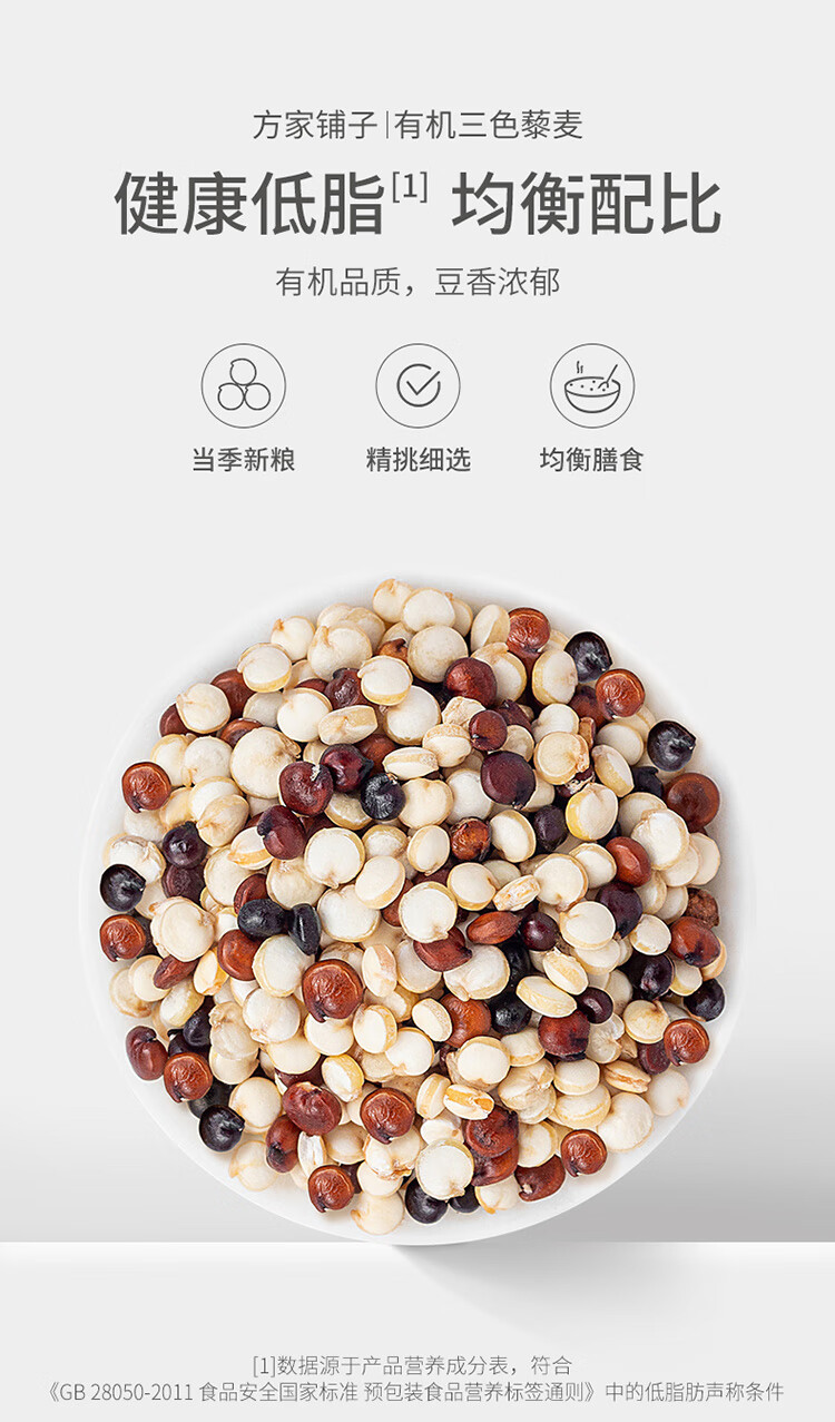 方家铺子中华老字号 有机三色藜麦米2.6斤 黎麦 五谷杂粮 轻食沙拉伴侣