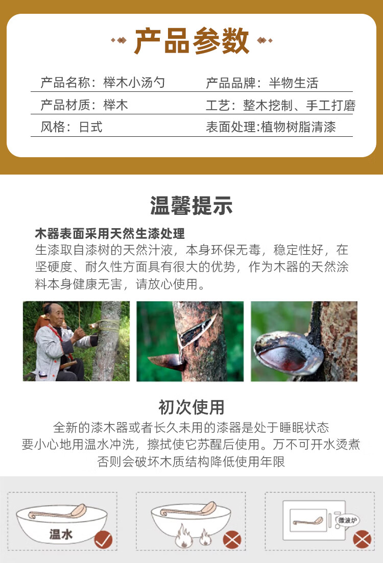 半物生活天然实木小木勺环保无蜡盛汤勺粥饭勺日式木质勺子调羹长柄榉木勺