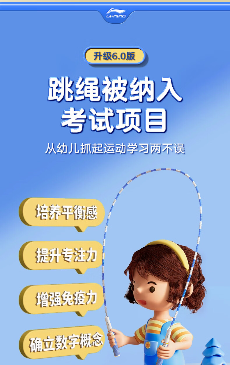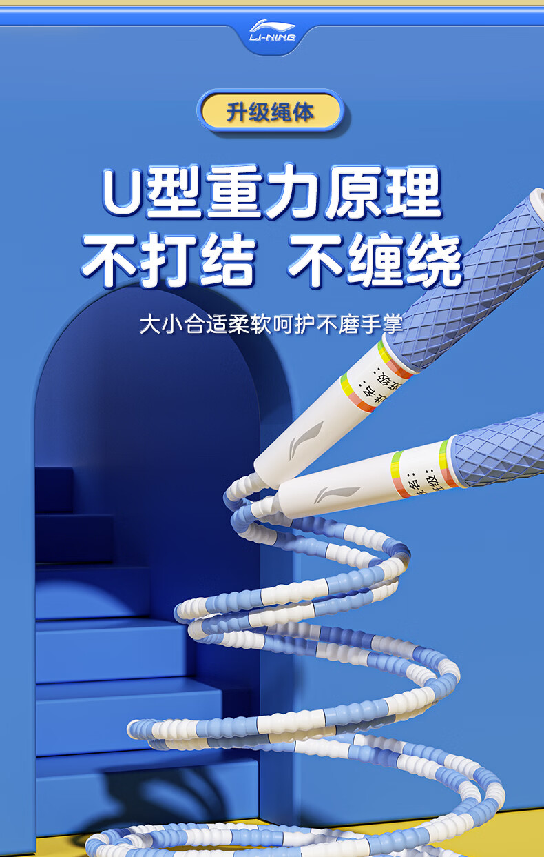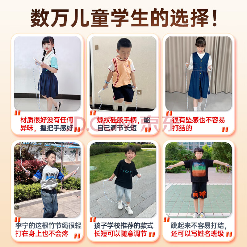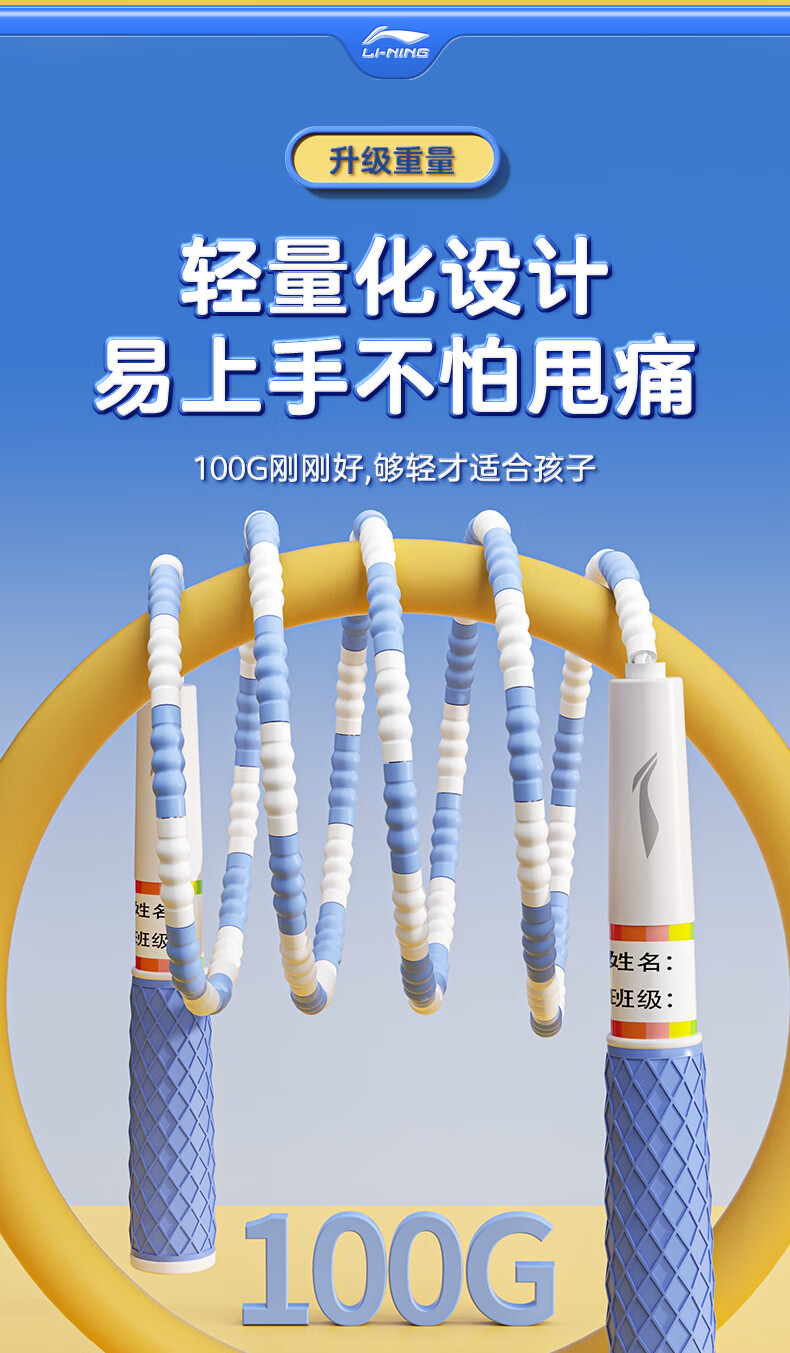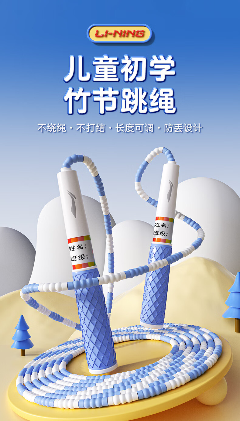 李宁(LI-NING)竹节跳绳儿童小学生幼儿园3-5-6-12岁一年级初学考试训练沙专用式