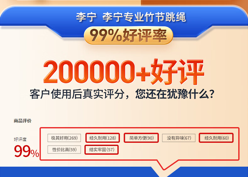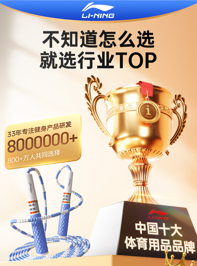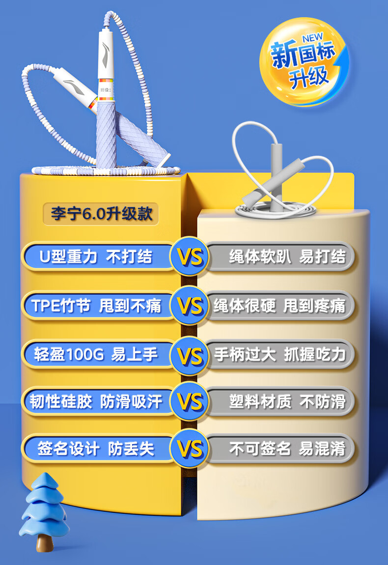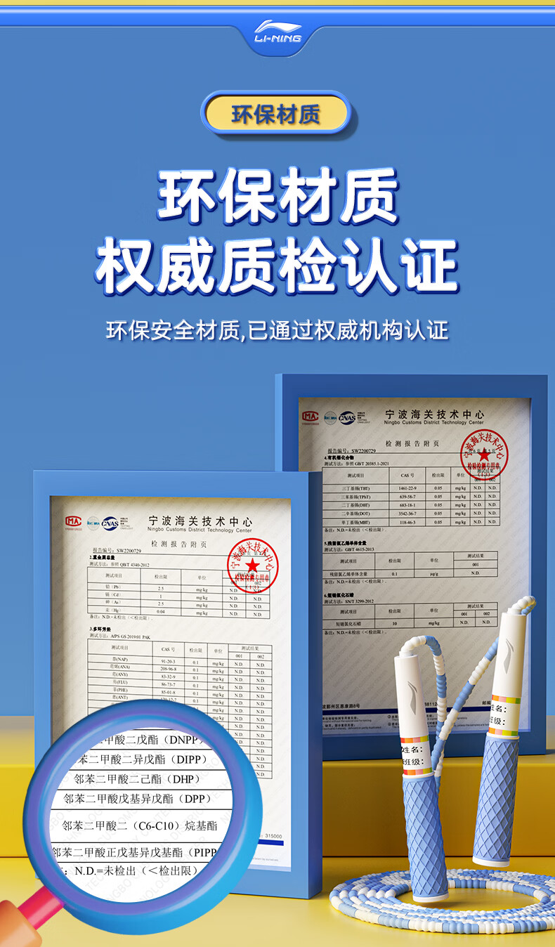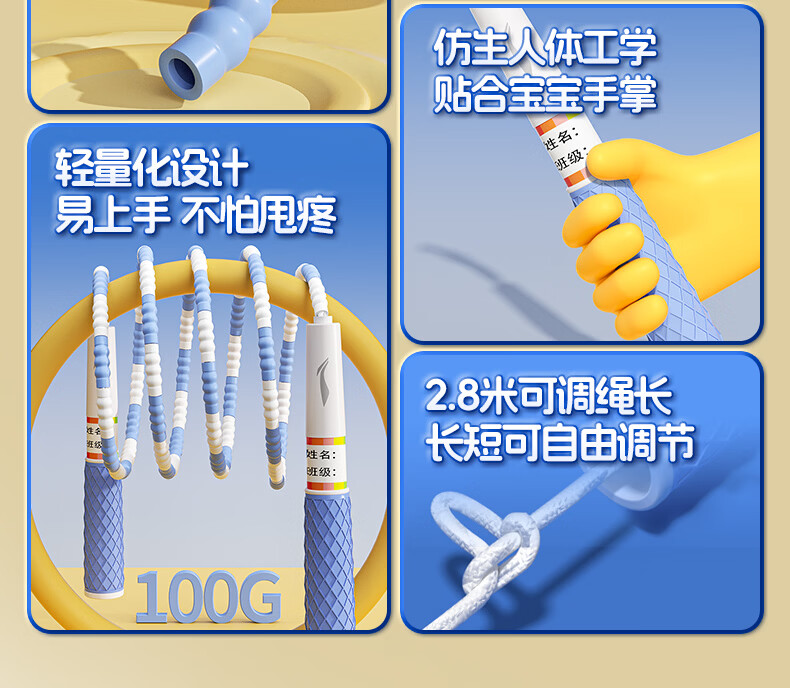 李宁(LI-NING)竹节跳绳儿童小学生幼儿园3-5-6-12岁一年级初学考试训练沙专用式