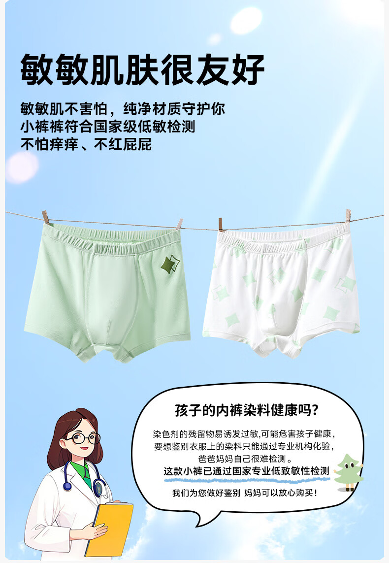 松山棉店儿童奶滑小云裤莫代尔抑菌平角内裤男童-东方纹祥-芦苇绿150