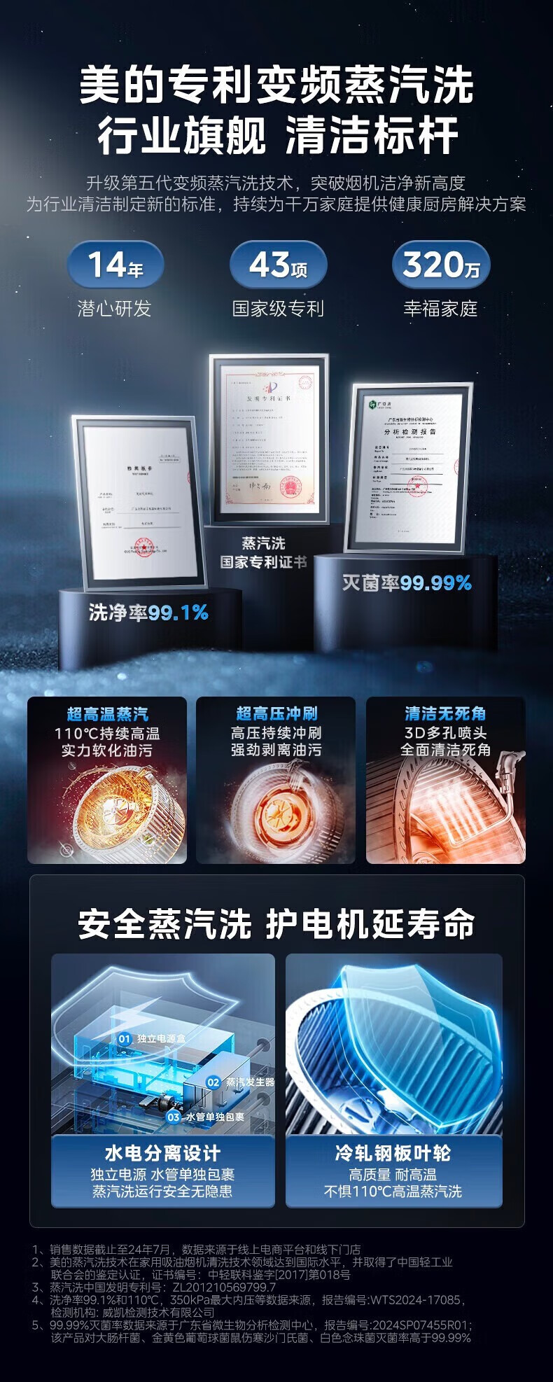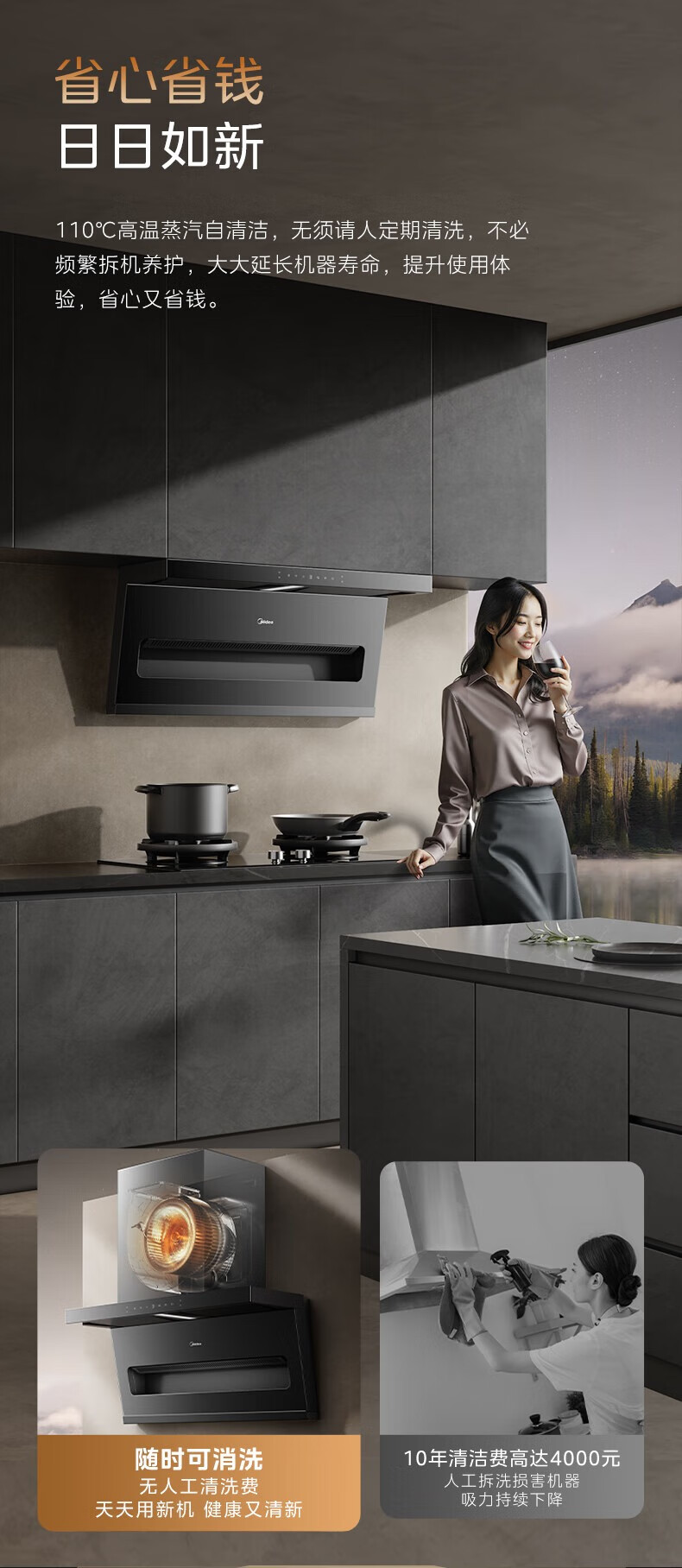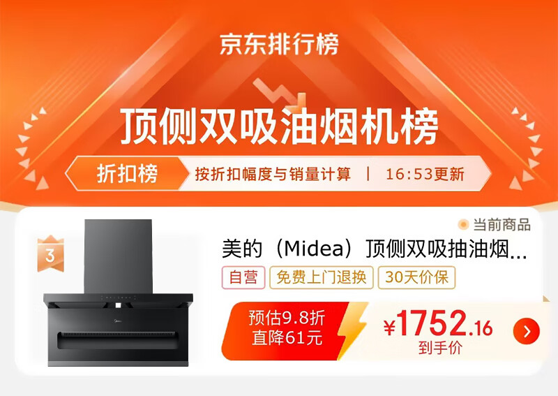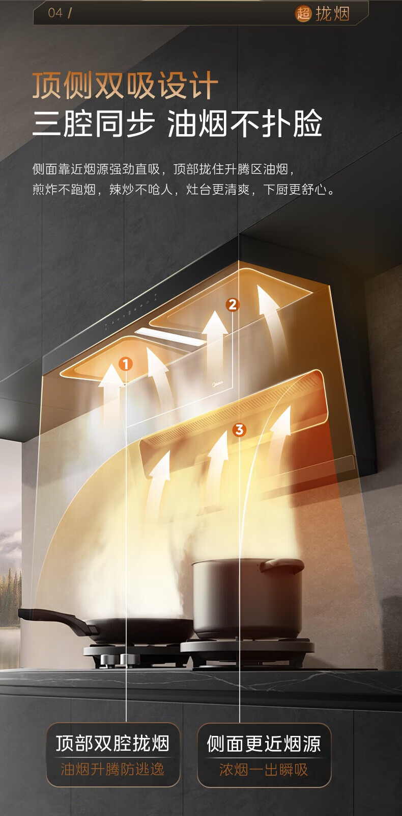 美的(Midea)顶侧双吸抽油烟机家用23m³变频大吸力蒸汽