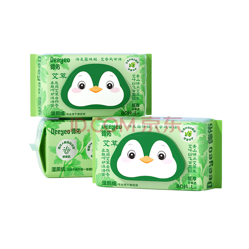 德佑艾草湿厕纸80抽*3包 湿厕卫生纸厕纸湿巾洁厕如厕纸巾 植物抗菌