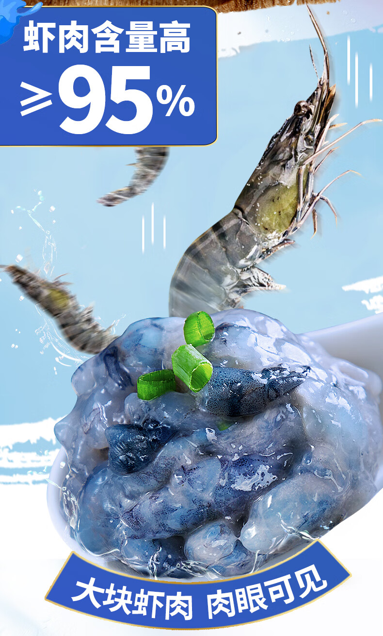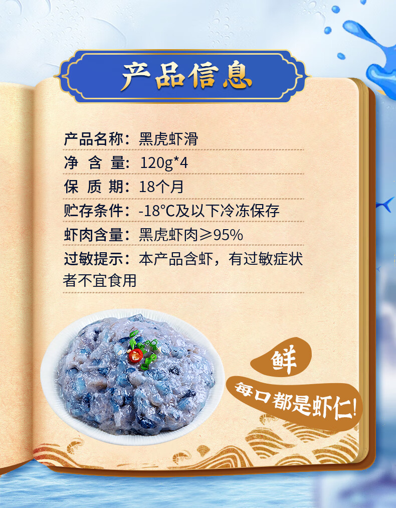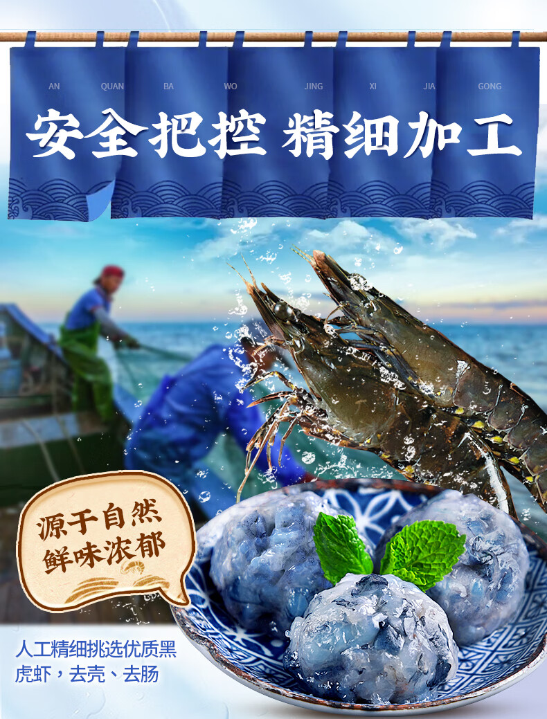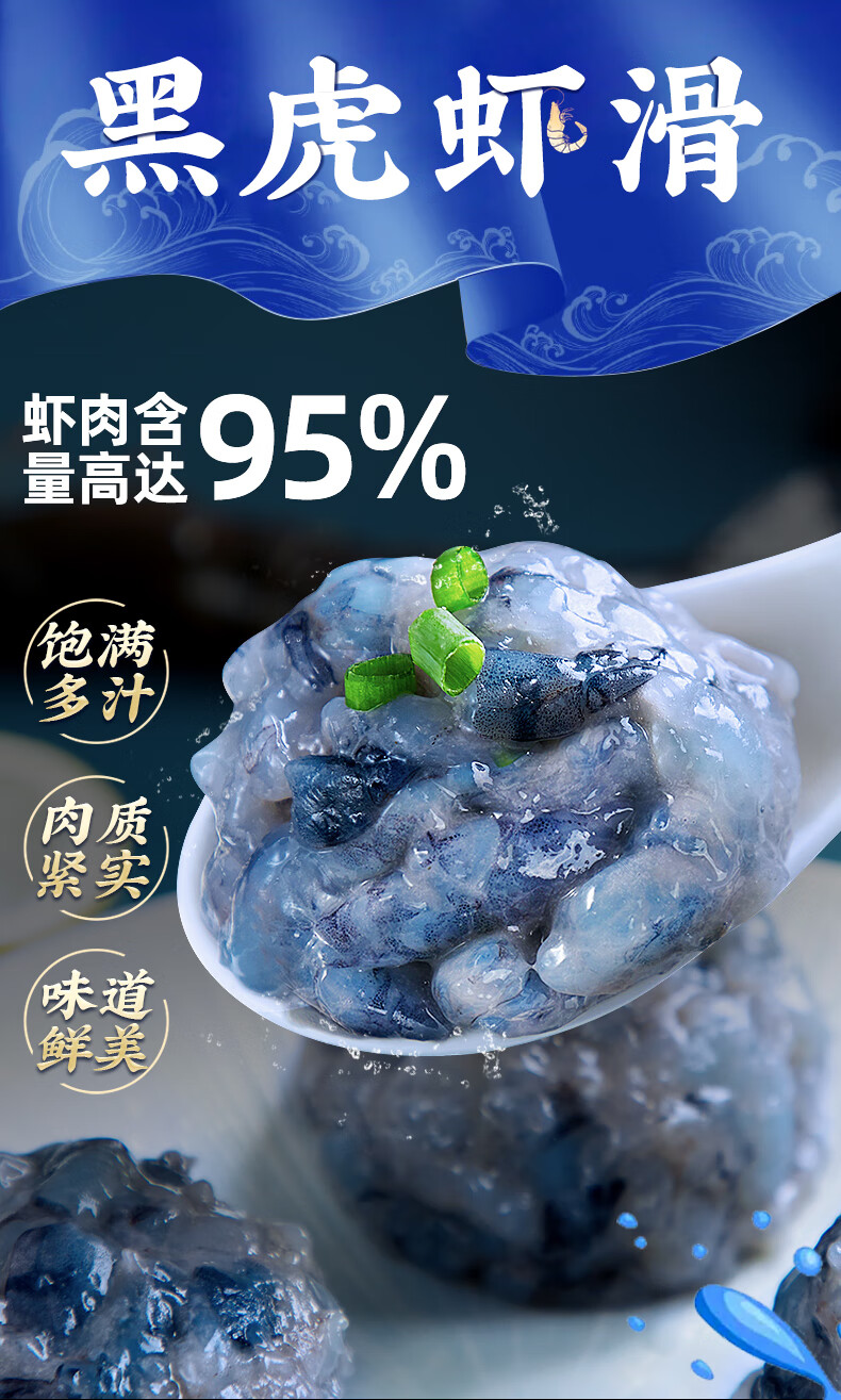 潮夫道黑虎虾滑120g*4虾肉含量约95% 虾饼虾球火锅食材麻辣烫关东煮