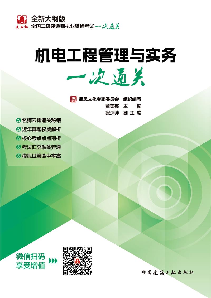 为了更好地帮助广大考生复习应考,提高考试通过率,我们专门组织国内顶级名师,依据最新版考试大纲和考试用书的要求,对各门课程的历年考情、核心考点、考题设计等进行了全面的梳理和剖析,精心编写了二级建造师执业资格考试一次通关辅导丛书,丛书共分五册,分别为《建设工程施工管理一次通关》《建设工程法规及相关知识一次通关》《建筑工程管理与实务一次通关》《机电工程管理与实务一次通关》《市政公用工程管理与实务一次通关》。本套丛书在体例上独树一帜,能够帮助考生轻松掌握所有核心考点,非常适合没有充足时间学习考试用书的考生。
