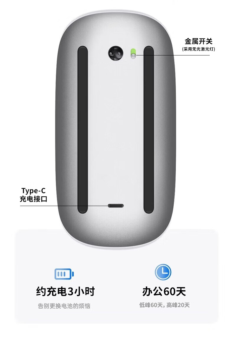 Bkayp【26年热销榜】适用苹果鼠标妙控三代无线蓝牙iPad平板MacBook笔记本台式电脑触控办公静音可充电