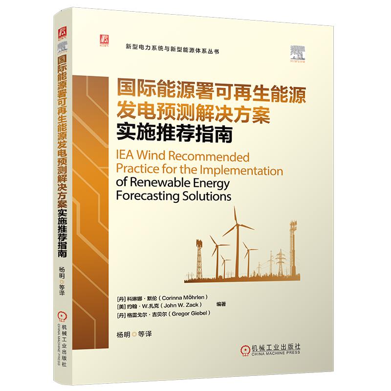 本书是国际能源署(IEA)风能技术合作计划关于可再生能源预测的推荐应用方法,内容分为4部分:第1部分是预测解决方案的选择,主要讨论了如何制定一个标准化的流程,以帮助用户根据具体的应用场景选择最佳的预测解决方案;第2部分是预测基准试验和测试的设计与执行,具体讨论了定制化的预测基准和试验的设计、执行和分析;第3部分是预测解决方案的评估,包括对备选预测方法、业务和非业务应用预测方法以及整个预测解决方案的评估;第4部分是实时预报应用中的气象和电力数据需求,为选择、部署和维护气象传感器、功率测量设备以及进行相关数据质量控制工作提供指导。