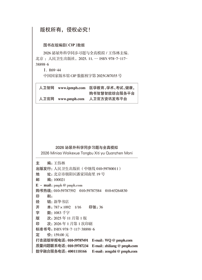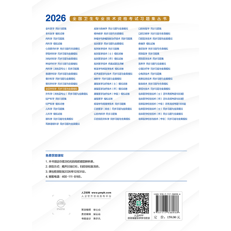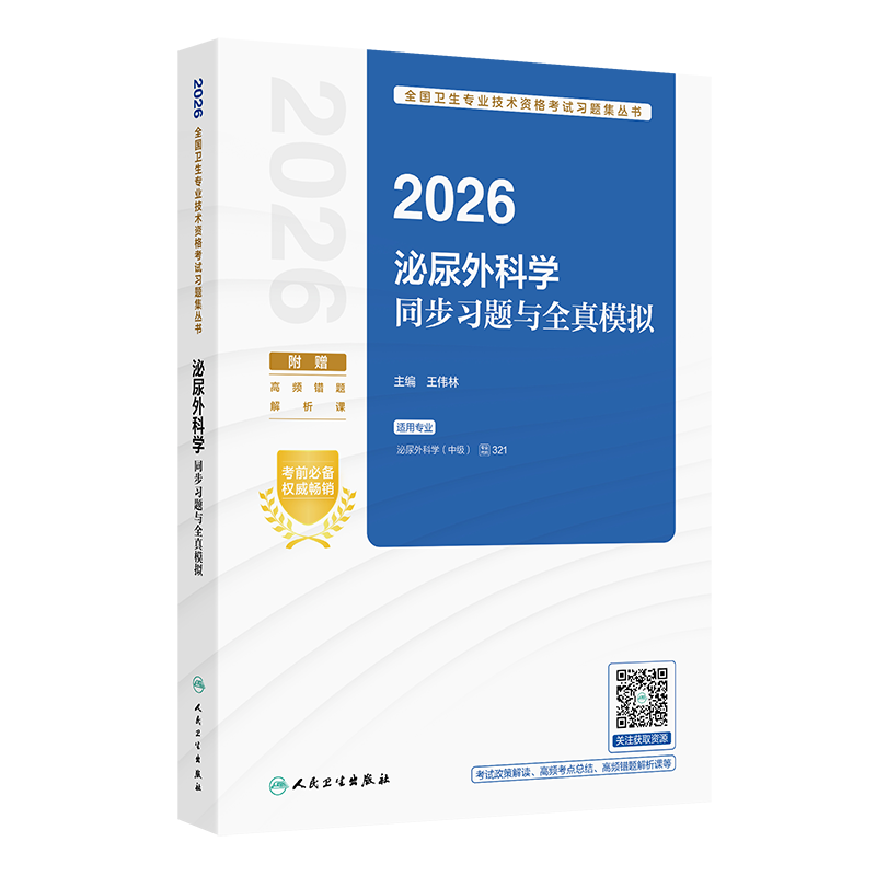 为了更好地帮助广大考生做好考前复习,人民卫生出版社组织国内有关专家编写了“2026全国卫生专业技术资格考试习题集丛书”。本套丛书以最新考试大纲和全国卫生专业技术资格考试用书编写专家委员会编写的考试指导为依据,以科学、严谨、客观、规范为原则,严格按照实际考试的科目划分和题型分布进行编写,切实考查考生对知识点的掌握程度和专业水平。本套习题集丛书包括《同步习题集》《模拟试卷》及《同步习题与全真模拟》,能够有效帮助考生进行考前复习和自测,检验学习成果。