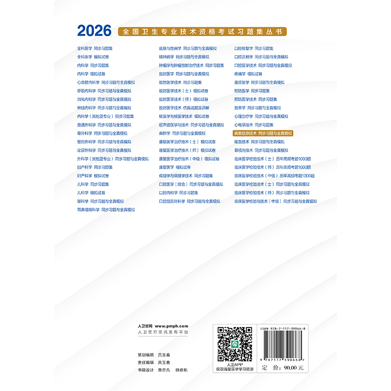 “全国卫生专业技术资格考试习题集丛书”以最新考试大纲和全国卫生专业技术资格考试用书编写专家委员会编写的考试指导为依据,编写工作遵循科学、严谨、客观、规范的原则,严格按照实际考试的科目划分和题型分布进行编写,切实考查考生对知识点的掌握程度和专业水平。本系列丛书包括《同步习题与全真模拟》《同步习题集》《模拟试卷》等,能够有效帮助考生考前复习、自测和反馈学习成果。《同步习题与全真模拟》中的同步习题部分按考试指导的章节编写,题型全面,题量丰富,涵盖考试大纲的所有知识点,突出重点、难点;模拟试卷部分试题难度和题型分布参考实际考试情况设定,仿真度高,用于考生考前自测。