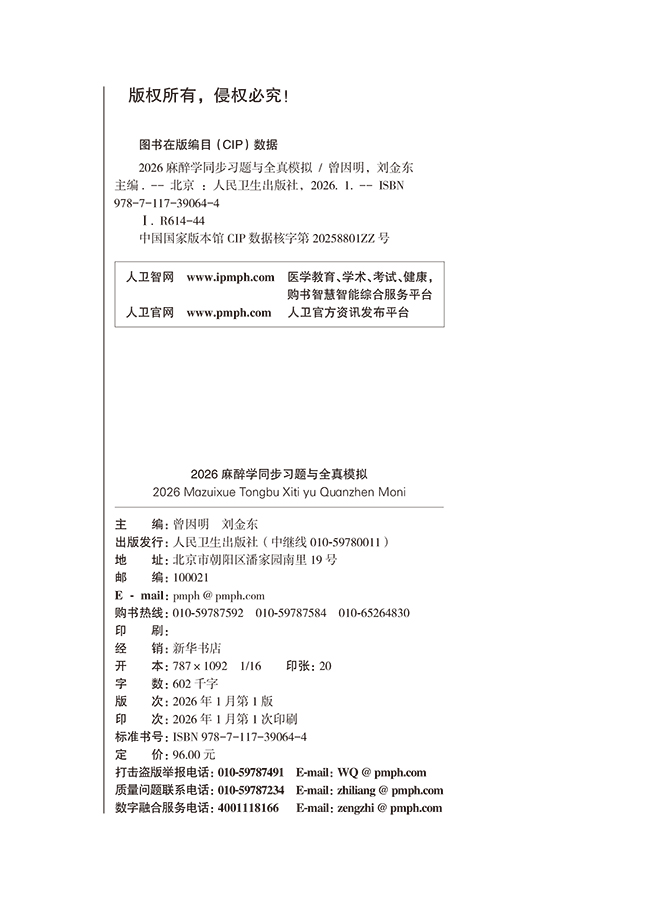 2026麻醉学同步习题与全真模拟