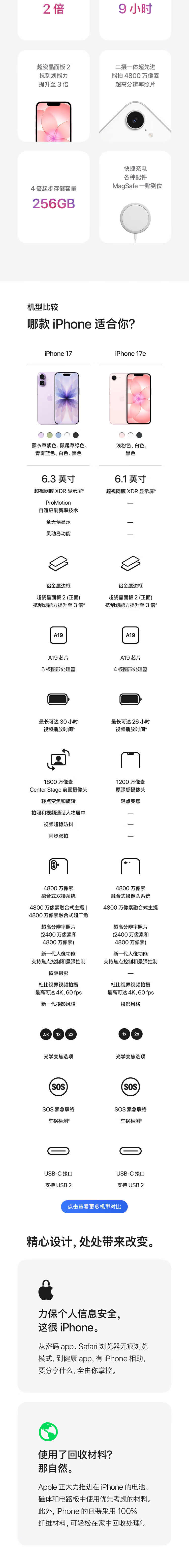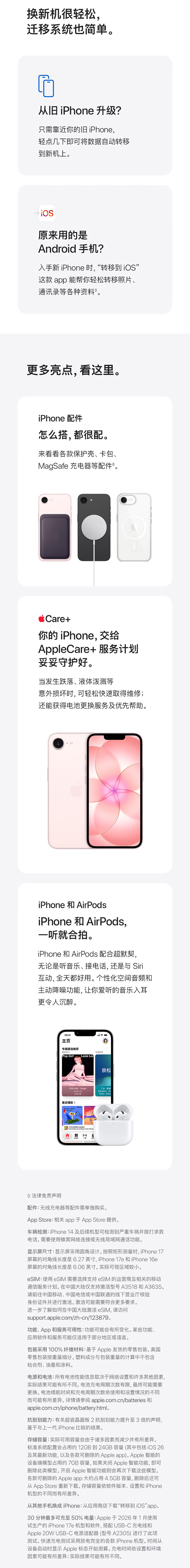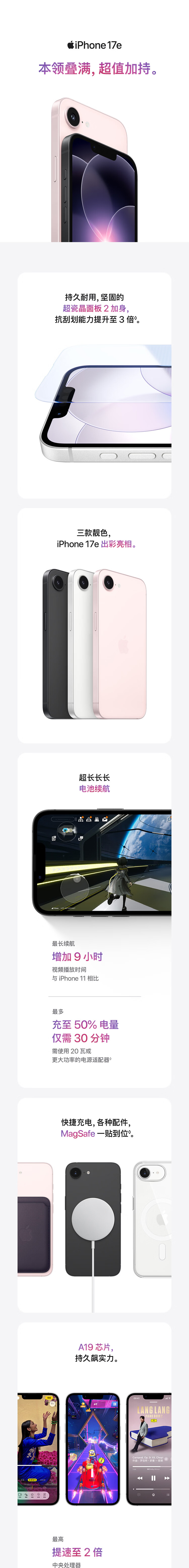 Apple/苹果 iPhone 17e(A3635)512GB 黑色 支持移动联通电信5G 单实体卡槽 支持双eSIM
