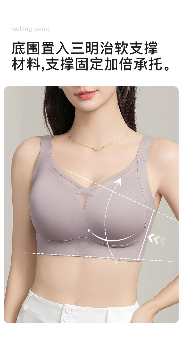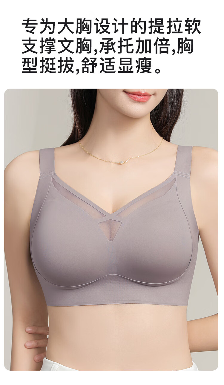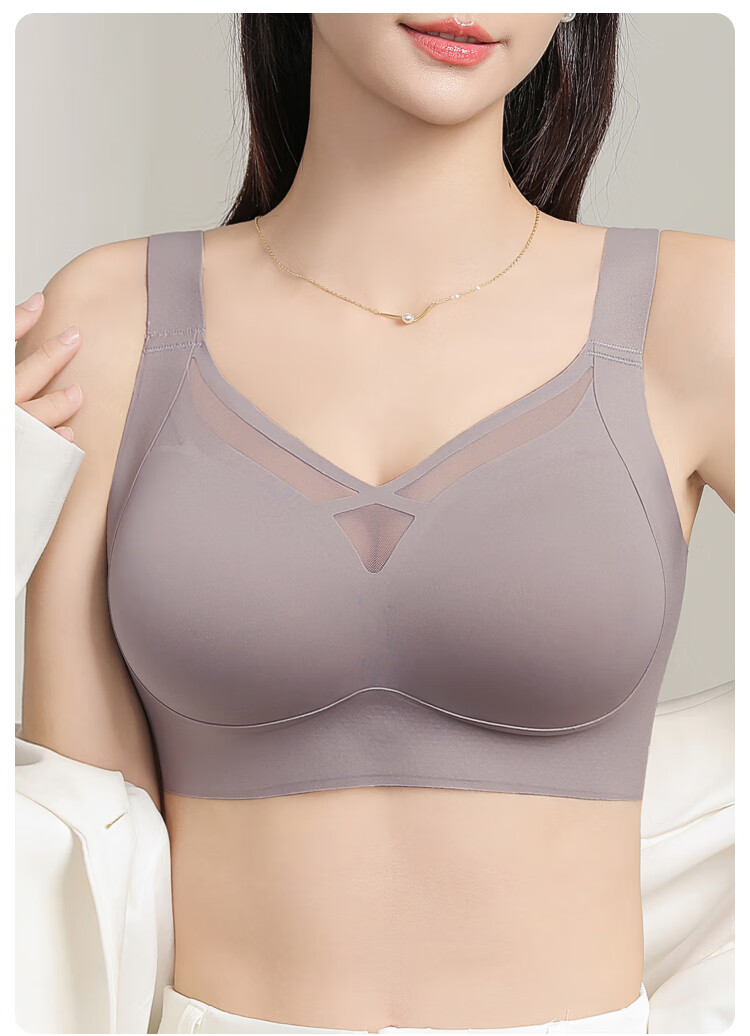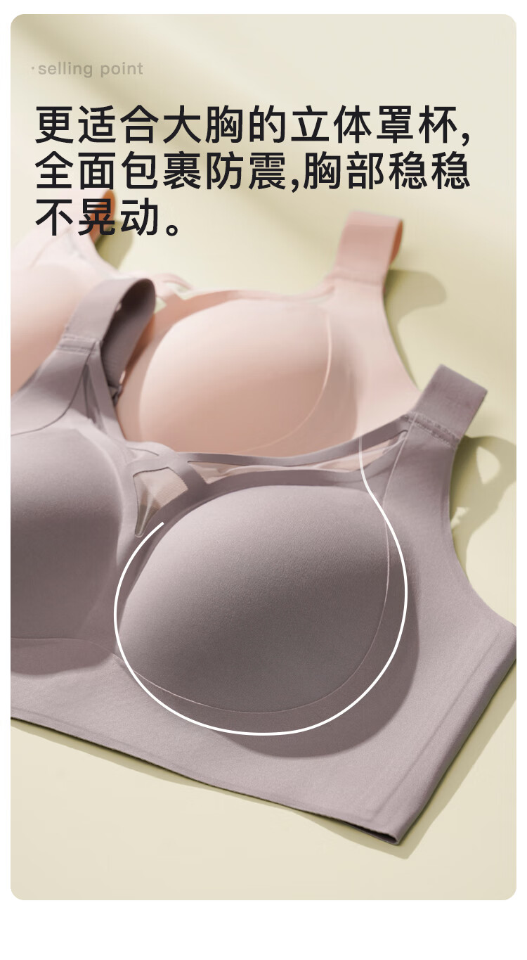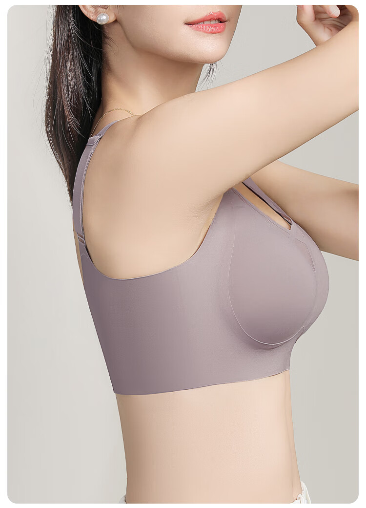 婷美无痕内衣女大胸显小胸聚拢运动无钢圈收副乳全罩杯薄款文胸罩